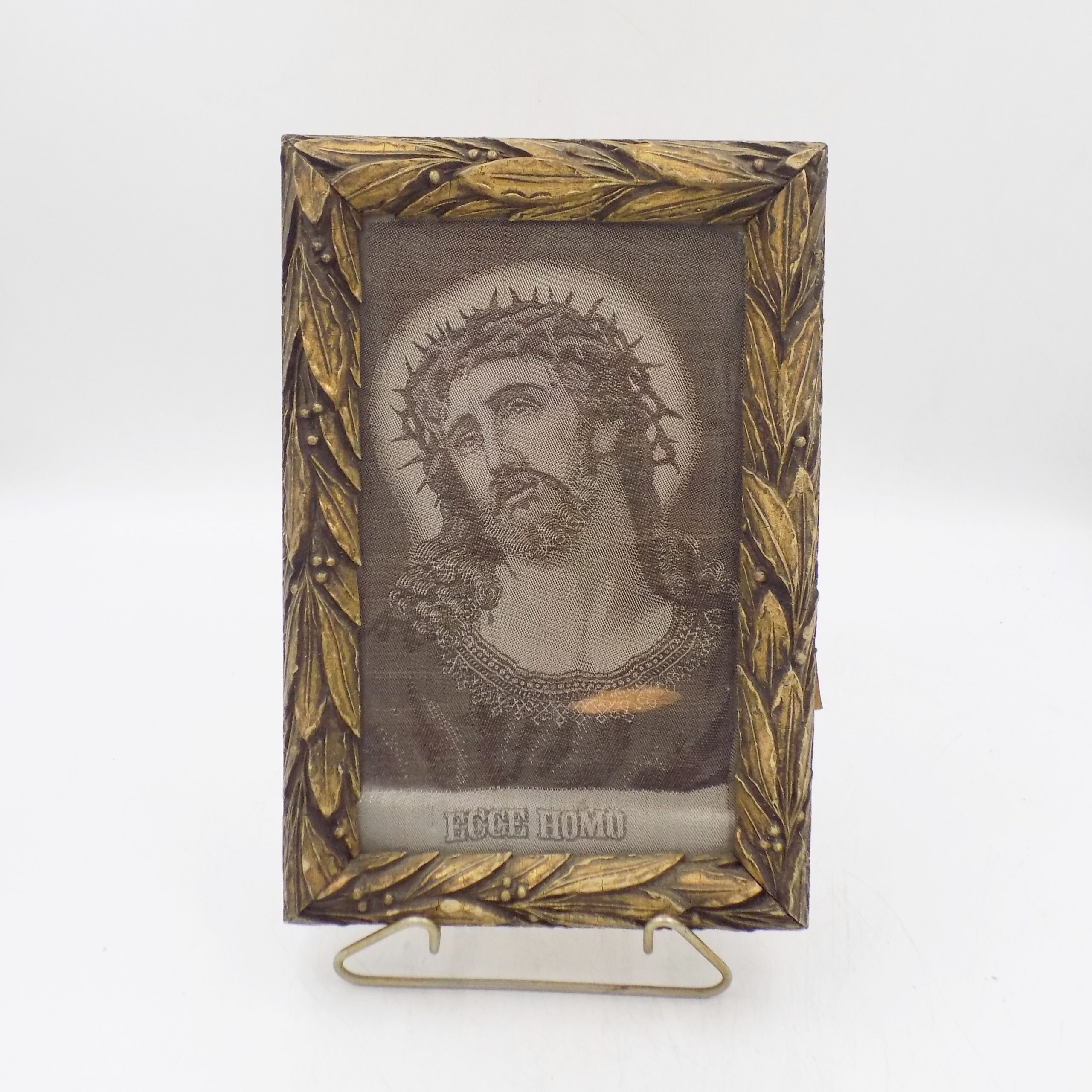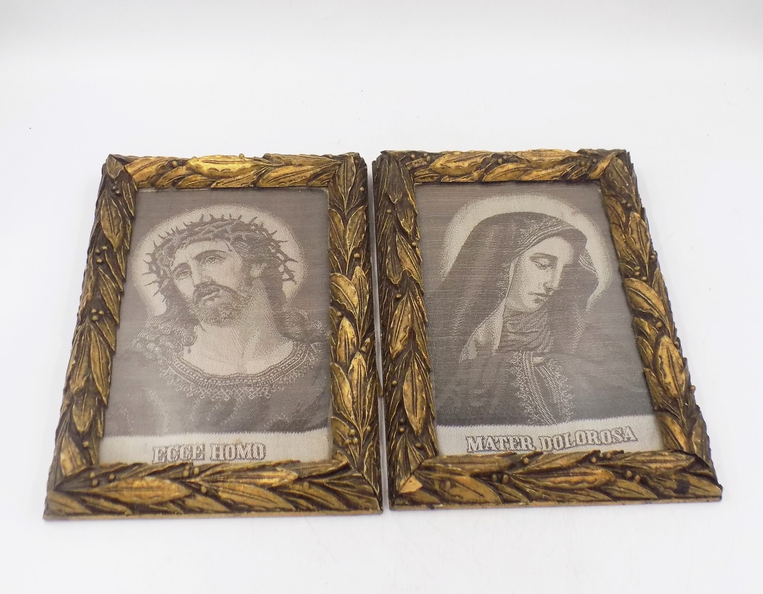 2 tkane ikony na jedwabiu z I poł.XX w. Wymiary; 25 x 17 cm.
