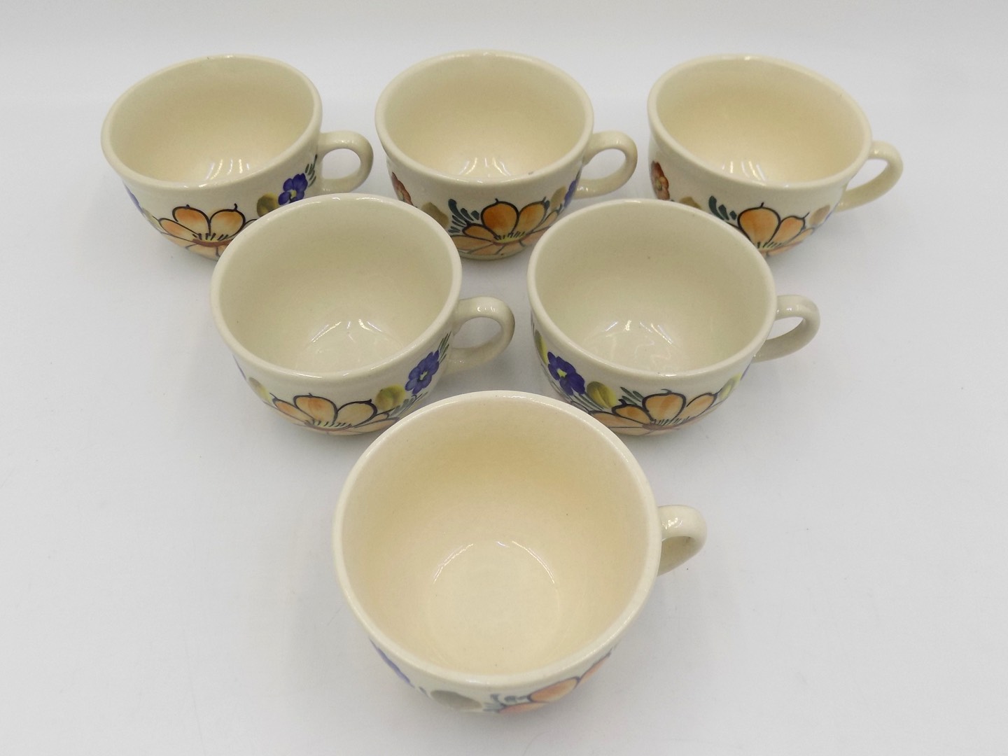 Filiżanki fajansowe z Włocławka z lat 70/80 - zestaw 6 sztuk