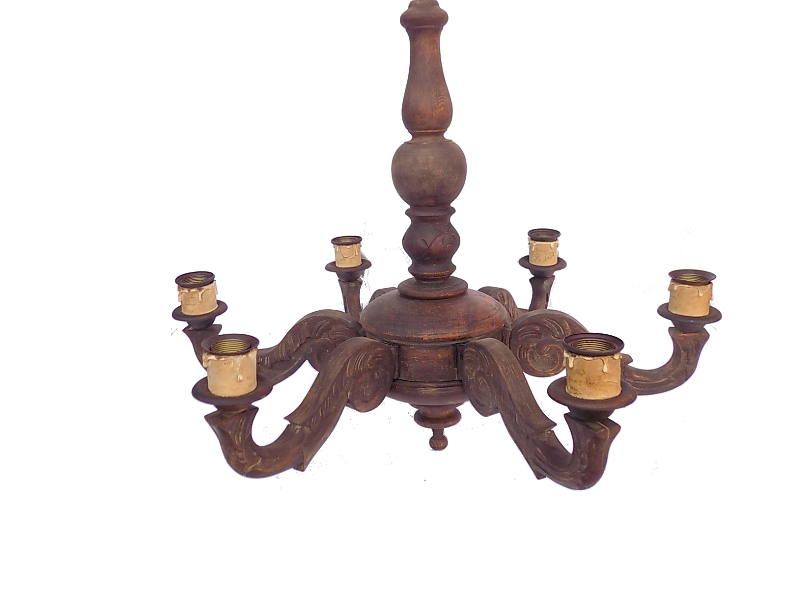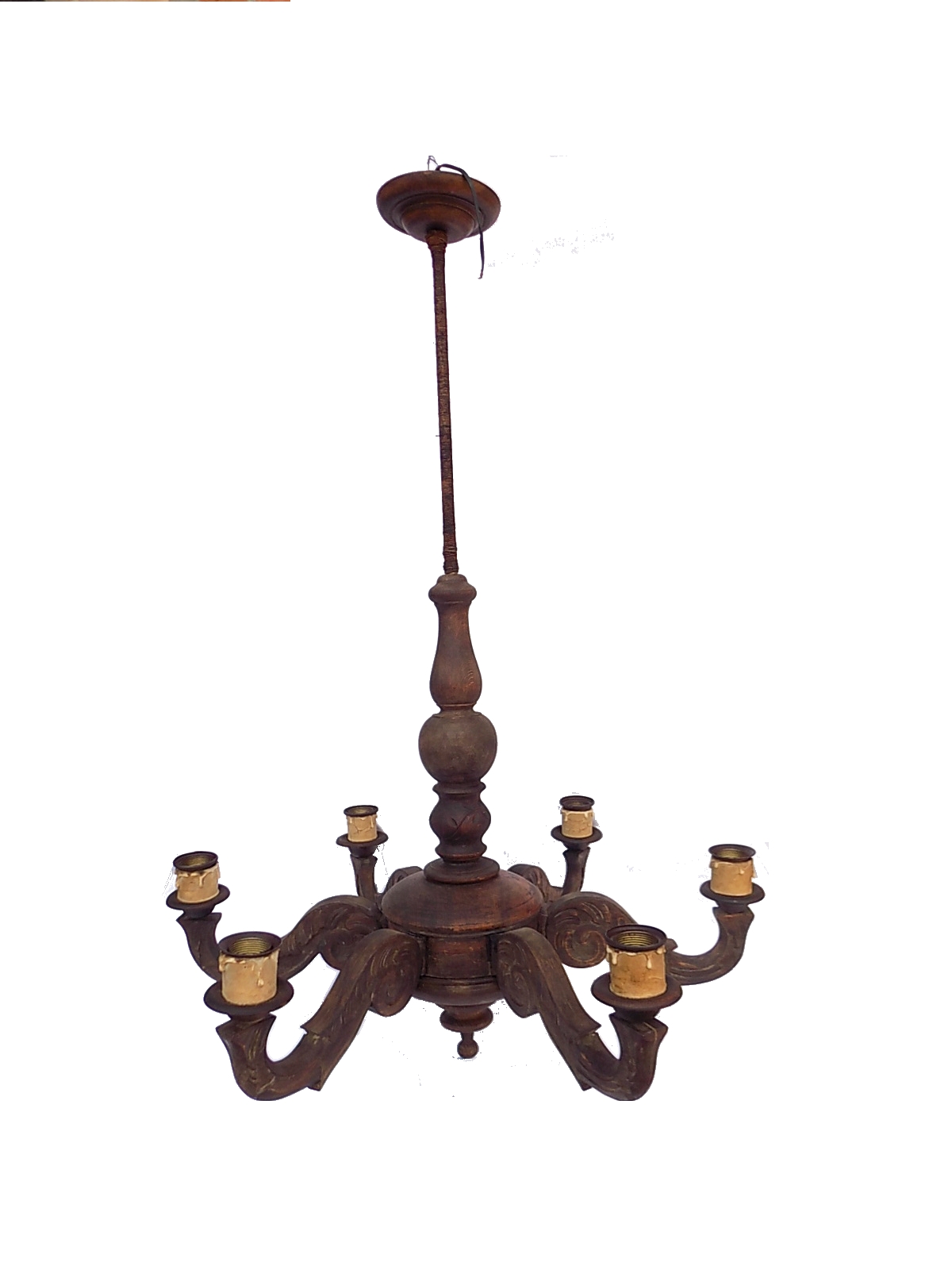 Żyrandol 6-ramienny z I poł.XX w. Sprawny. Wymiary; wys.109 x 73 cm.