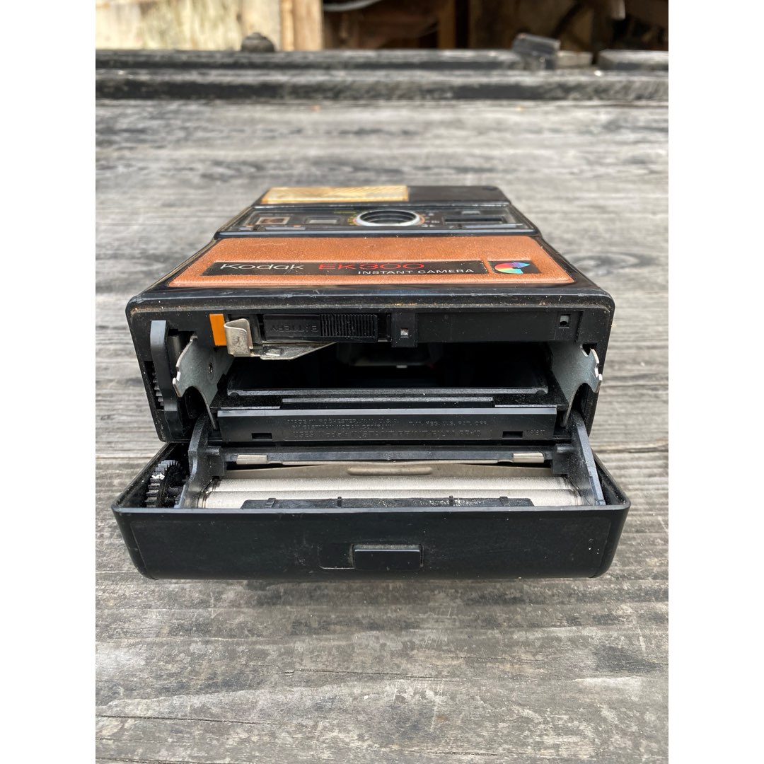 Aparat Kodak EK300 jest to aparat typu "instant", który po zrobieniu zdjęcia natychmiast je drukuje, podobnie jak aparaty typu polaroid. Ślady użytkowania. Made in USA. Rok produkcji 1978. Wymiary; wys.12,5 x 21 x 12,5 cm.