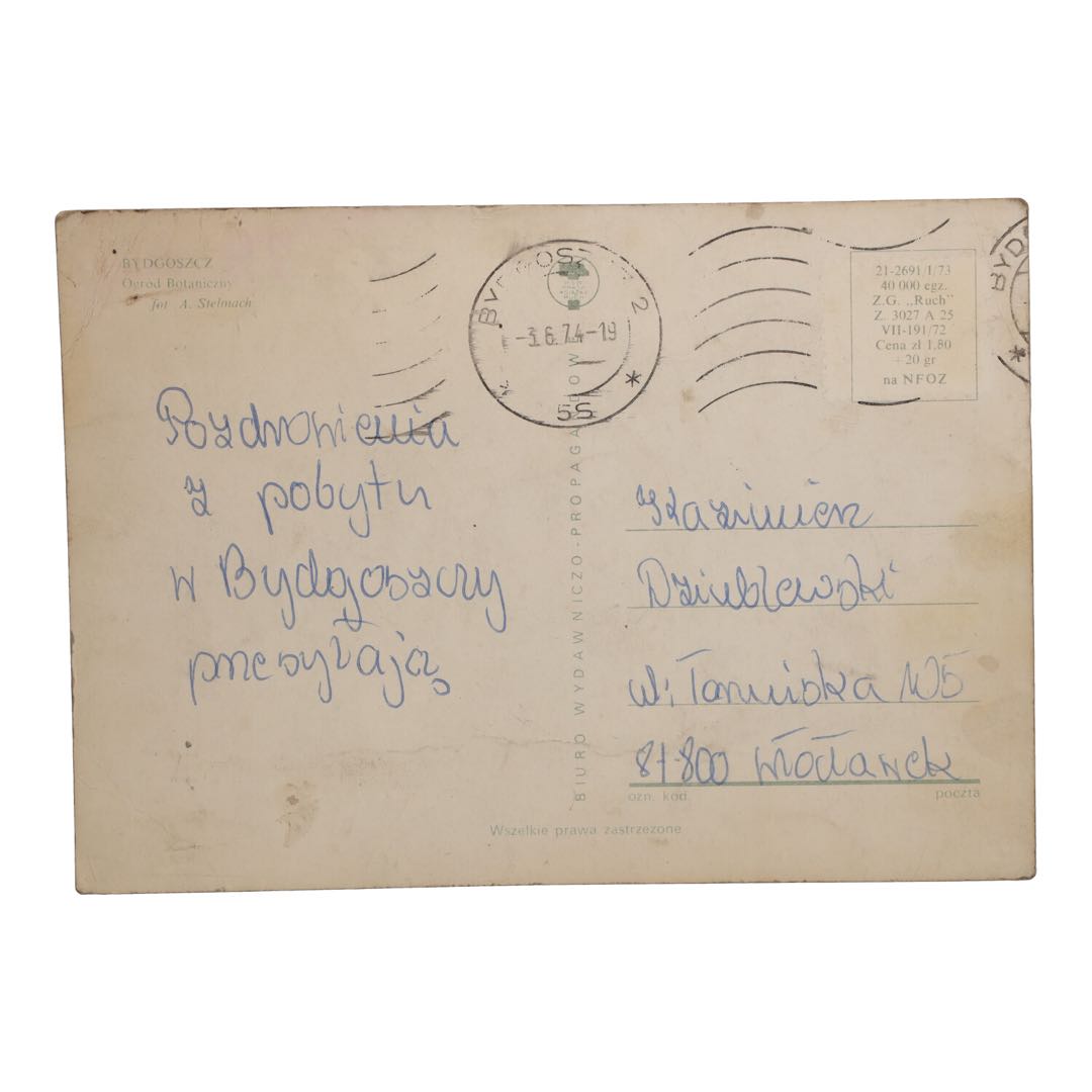 Zapraszamy do zakupu wyjątkowej pocztówki przedstawiającej Ogród Botaniczny w Bydgoszczy, cennego świadka historii czasów PRL. Ta klasyczna pocztówka o wymiarach 10,5 x 14,5 cm to doskonały wybór dla miłośników historii, kolekcjonerów unikatowych przedmiotów i każdego, kto docenia urok dawnych czasów.