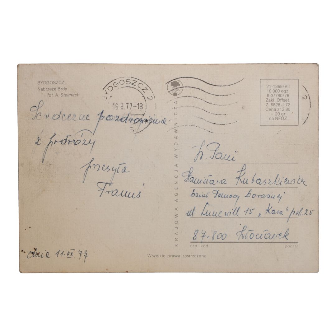 Za jedyne 25 zł ta pocztówka jest idealną pamiątką i eleganckim elementem dekoracyjnym, który przeniesie Cię w czasie do wyjątkowych lat komunizmu. Nie przegap okazji, aby dodać ten wyjątkowy kawałek historii Bydgoszczy do swojej kolekcji!