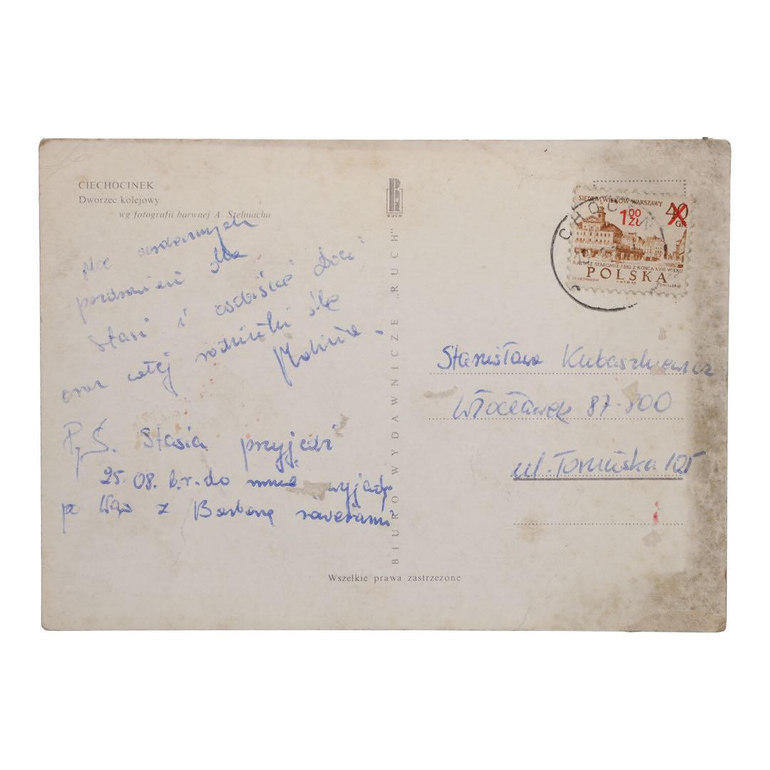 Oferujemy wyjątkową pocztówkę z czasów PRL, przedstawiającą zabytkowy dworzec kolejowy w Ciechocinku. Oferowana w rozmiarze 10,5 x 14,5 cm pocztówka to doskonały sposób na zanurzenie się w nostalgicznych wspomnieniach minionych dekad.