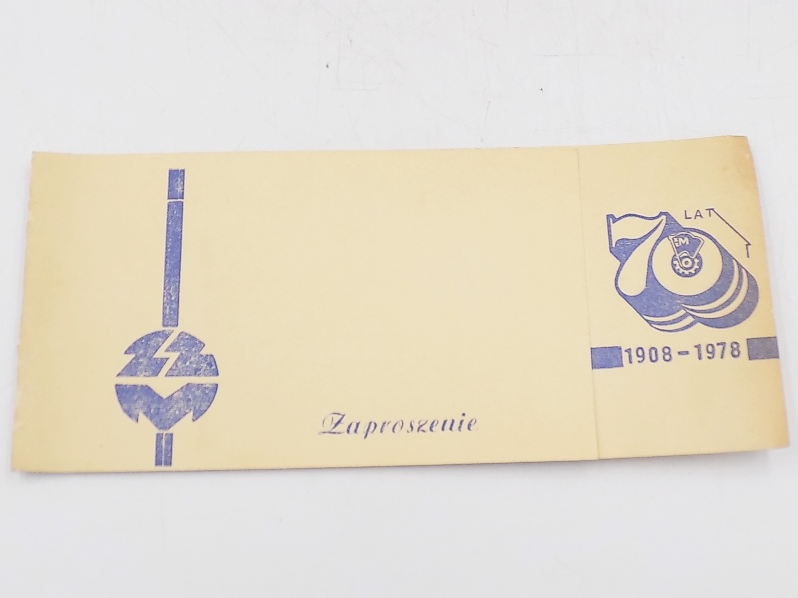Zaproszenie z 1978 r na Akademię z okazji Dnia Metalowca. Wymiary; 19,7 x 9 cm.