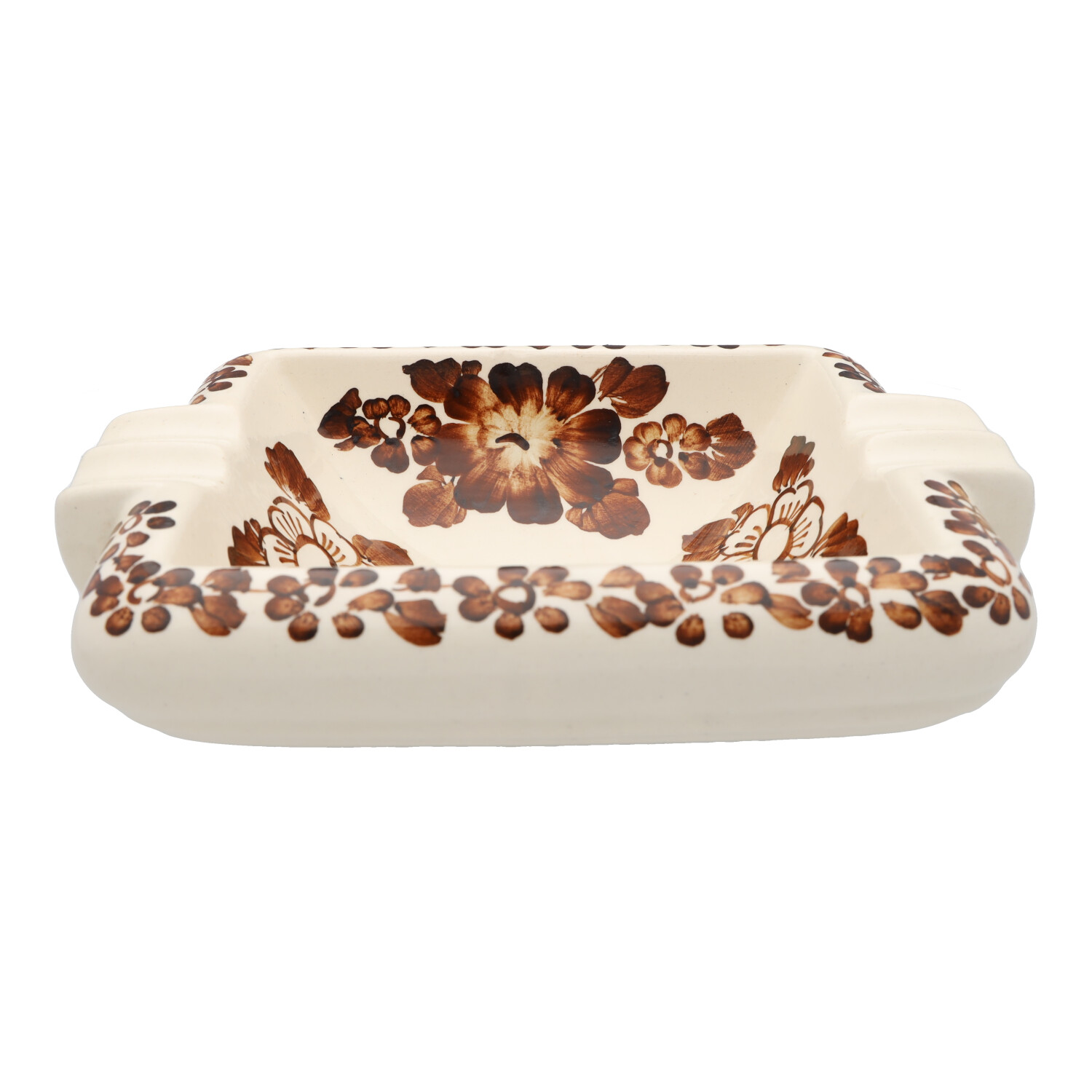 Fajansowa popielniczka z Włocławka z lat 70/80-tych. Sygnowana. Ręcznie malowana przez Dorotę Piekarską. Wzór nr 1 z roku 1953.