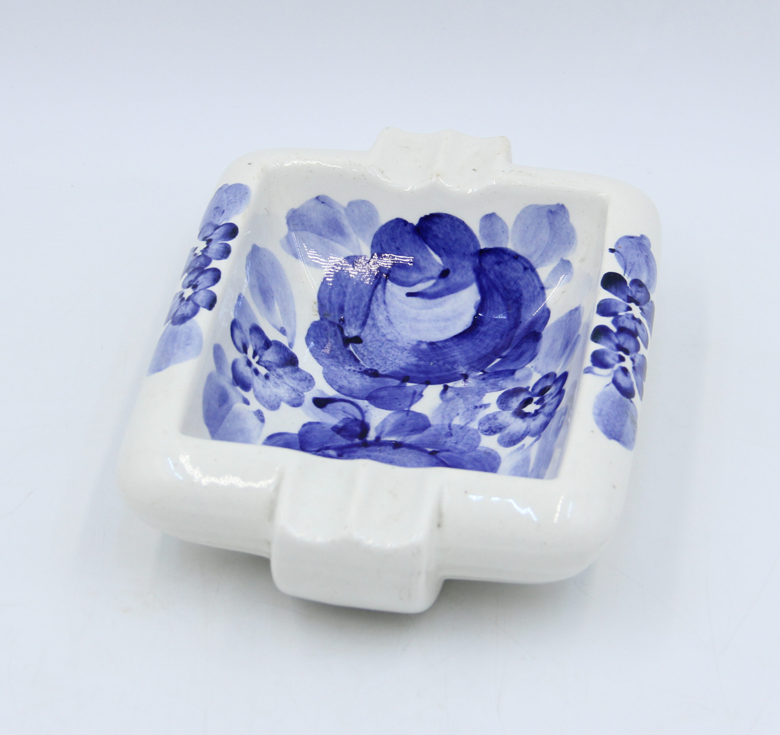 Fajansowa popielniczka z Włocławka z lat 70/80-tych. Sygnowana. Ręcznie malowana. Wzór nr 1 z roku 1953.