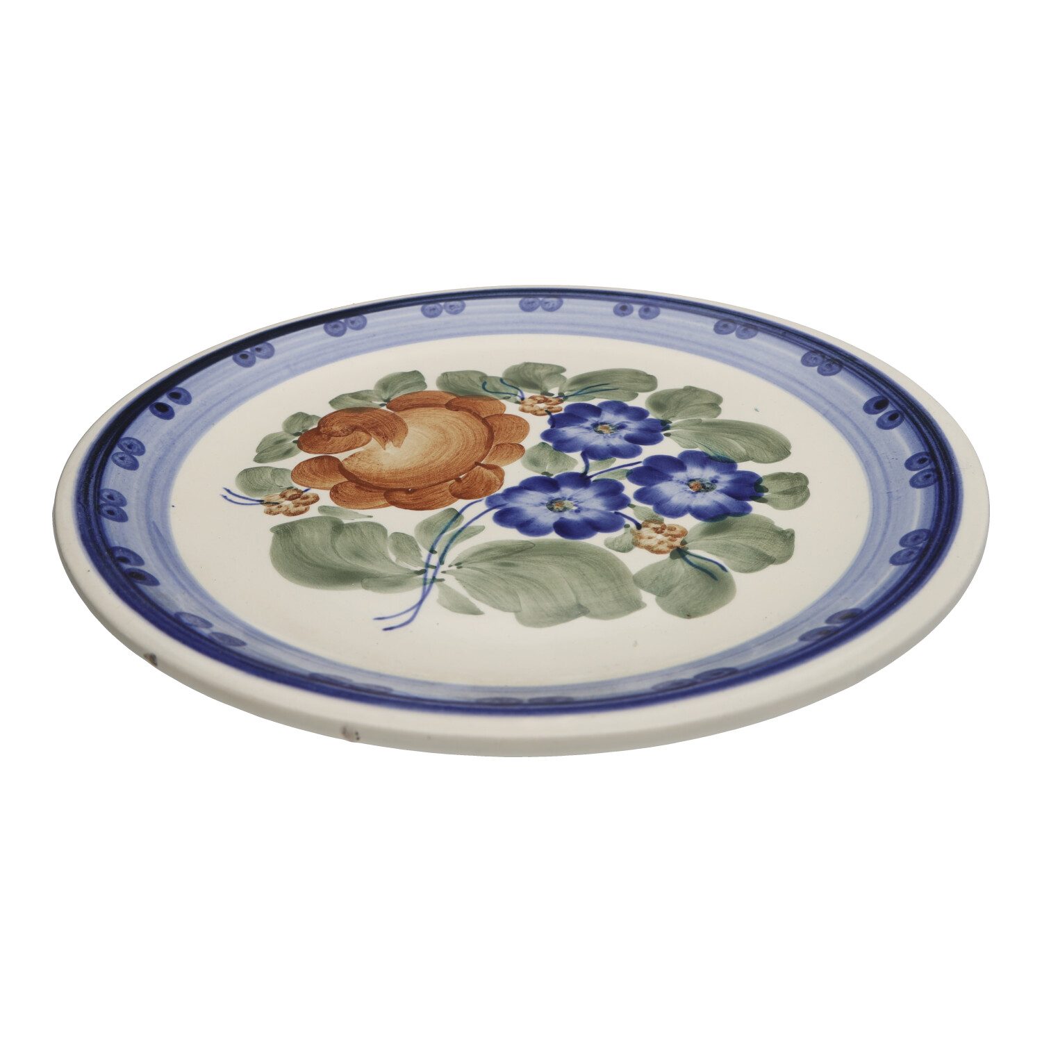 Fajansowy talerz dekoracyjny z Włocławka z lat 70/80-tych. Sygnowany. Ręcznie malowany.