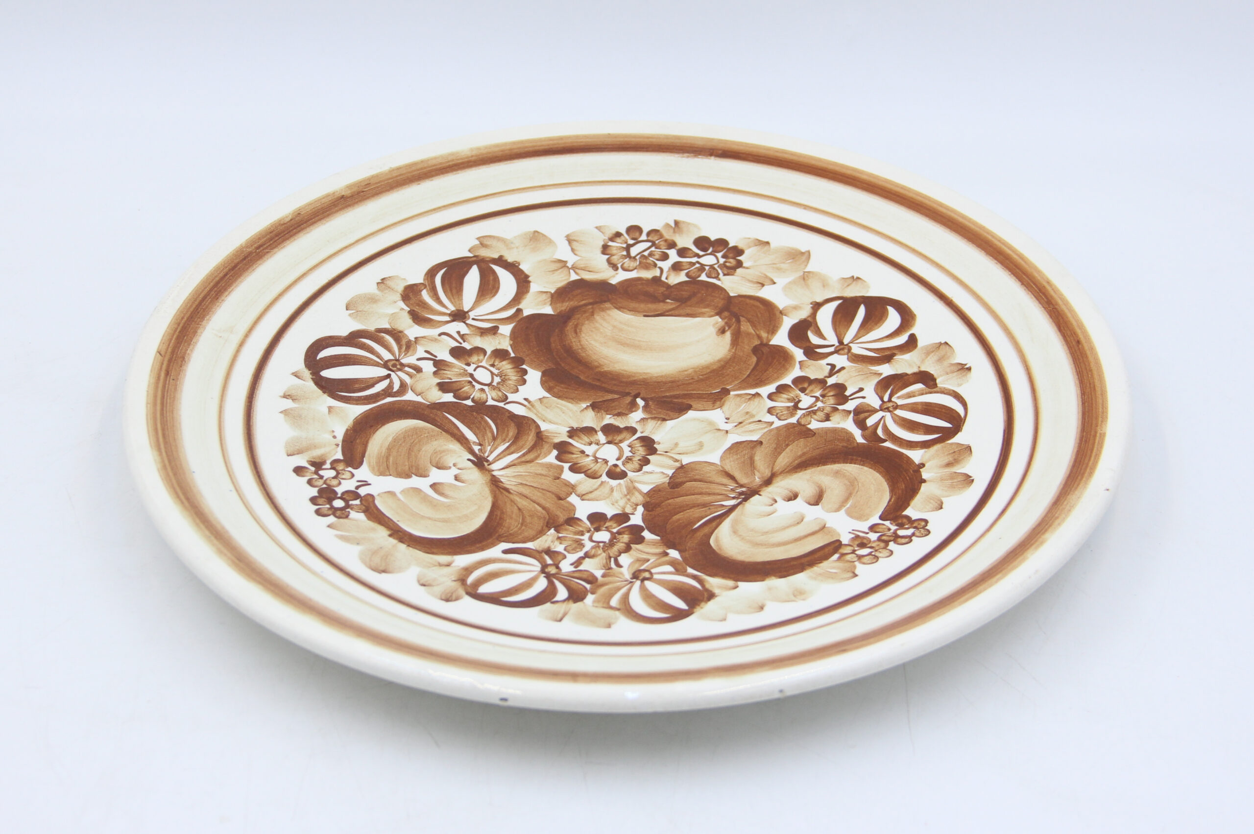 Fajansowa patera dekoracyjna z Włocławka z lat 70/80-tych. Sygnowana. Ręcznie malowana.