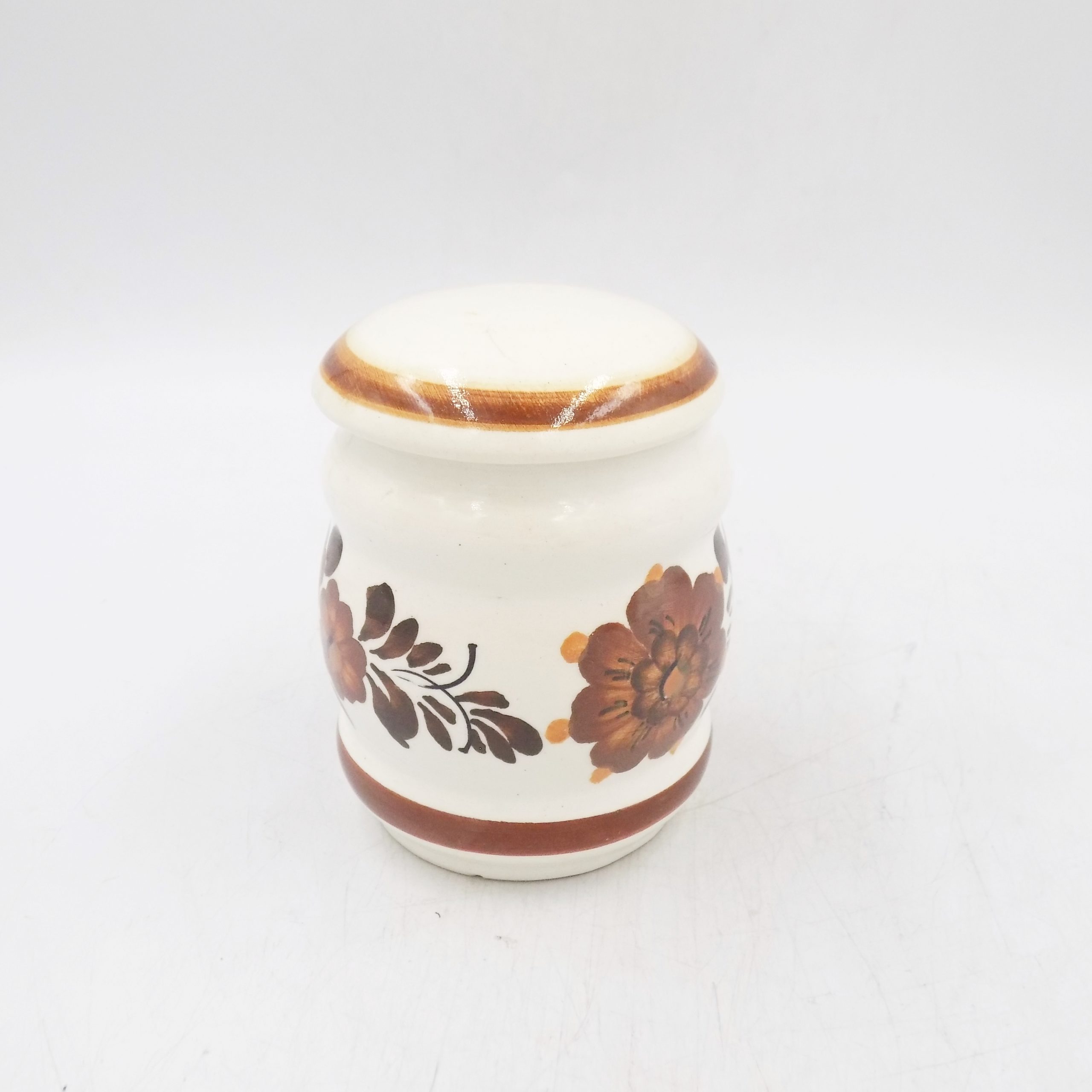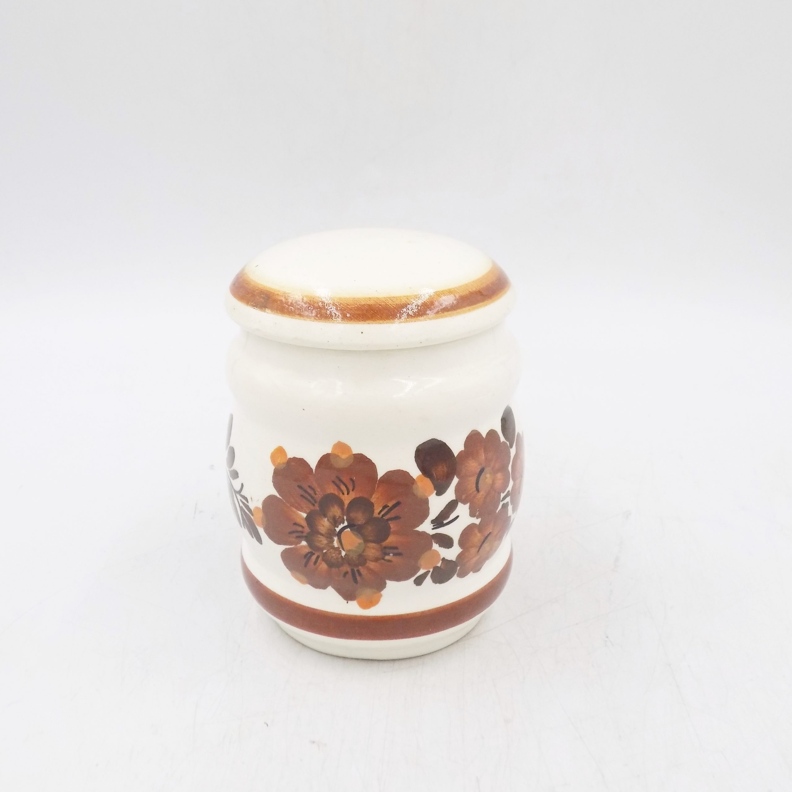Fajansowa puszka z Włocławka z lat 70/80-tych. Sygnowana. Ręcznie malowana. Wymiary; wys.10 x 7,5 cm.