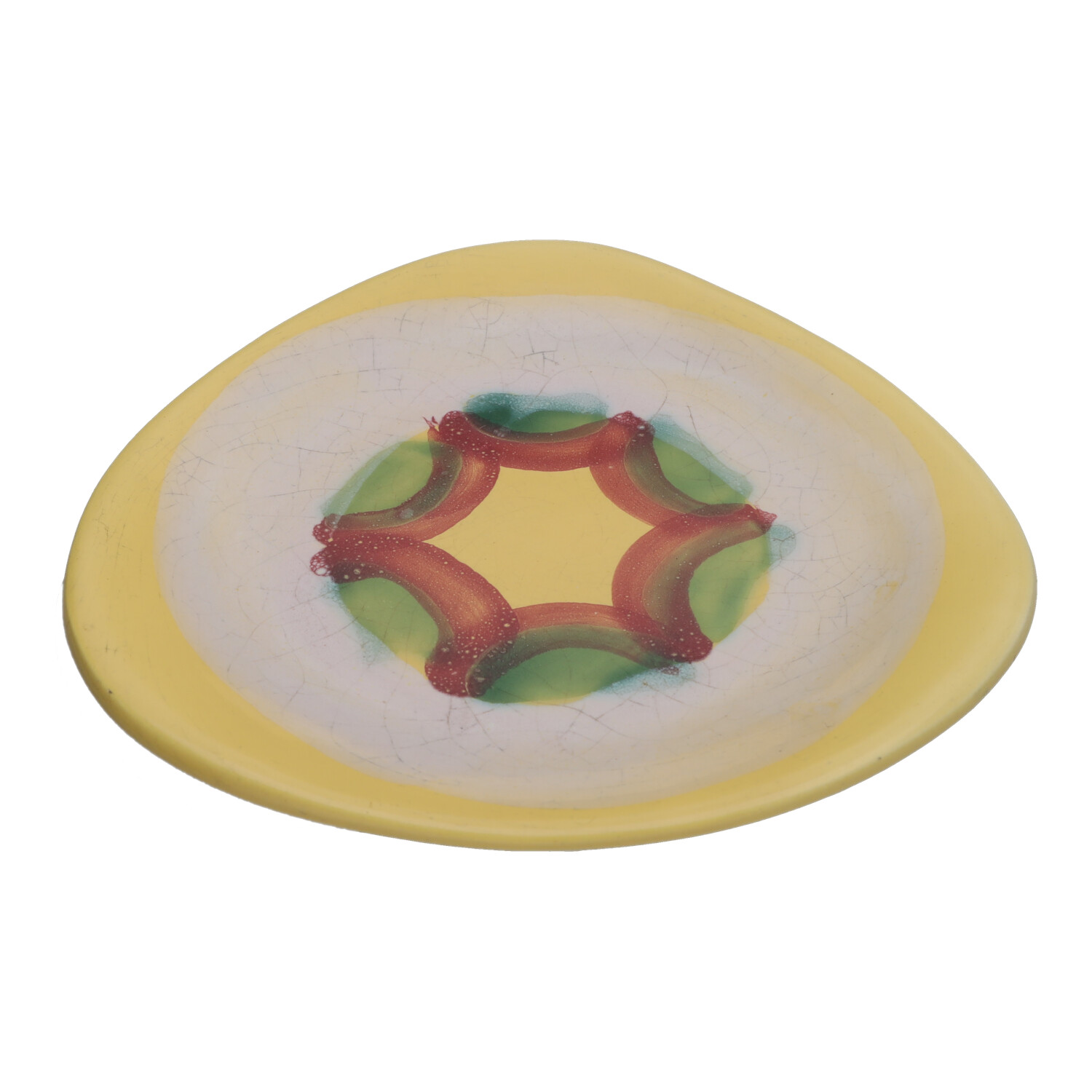 Fajansowy talerz deserowy z Włocławka z lat 60/70-tych. Sygnowany. Ręcznie malowany. Wzór 185 zatwierdzony w 1957 roku. Projekt Elżbieta Piwek.