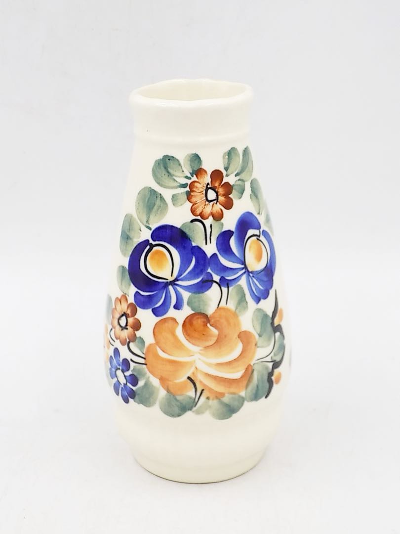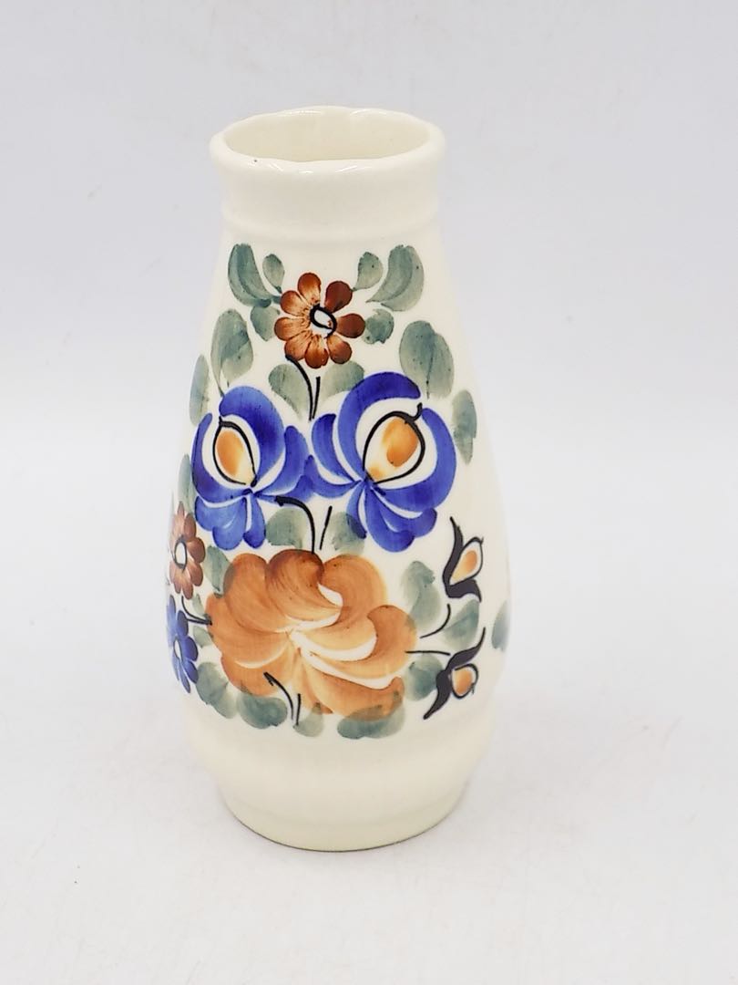 Fajansowy wazon z Włocławka z lat 70/80-tych. Sygnowany. Ręcznie malowany. Wymiary; 14 cm.
