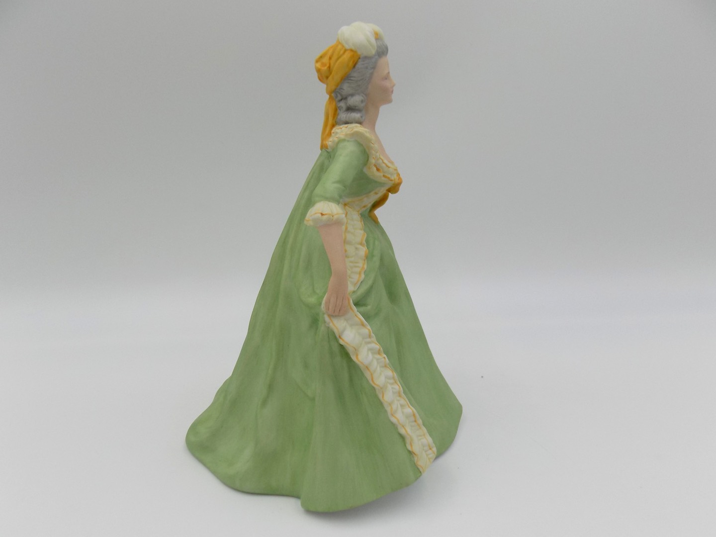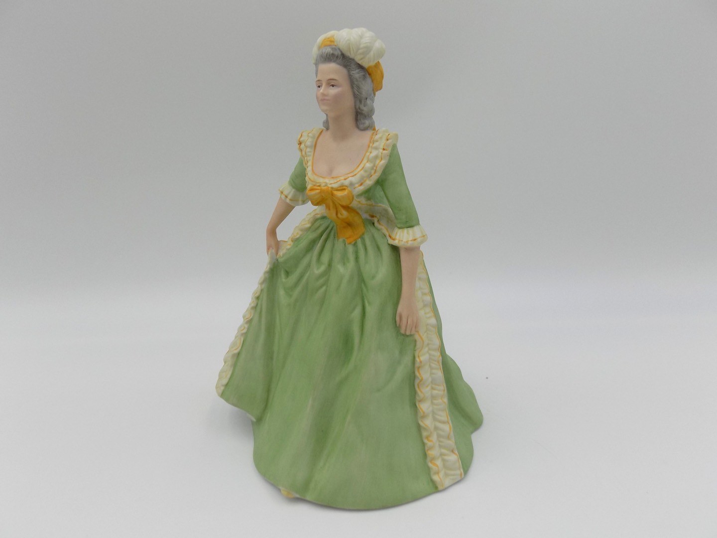 Niezwykły kunszt i finezja wykonania tej porcelanowej figurki wysuwają się na pierwszy plan dzięki ręcznemu malowaniu. Każdy szczegół, od subtelnych rysów twarzy po misternie zaprojektowane elementy stroju, został wykonany z niezrównaną precyzją i dbałością o najmniejsze detale. W rezultacie figurka emanuje wyjątkowym urokiem, będąc niemal wizualnym odzwierciedleniem epoki, którą reprezentuje.