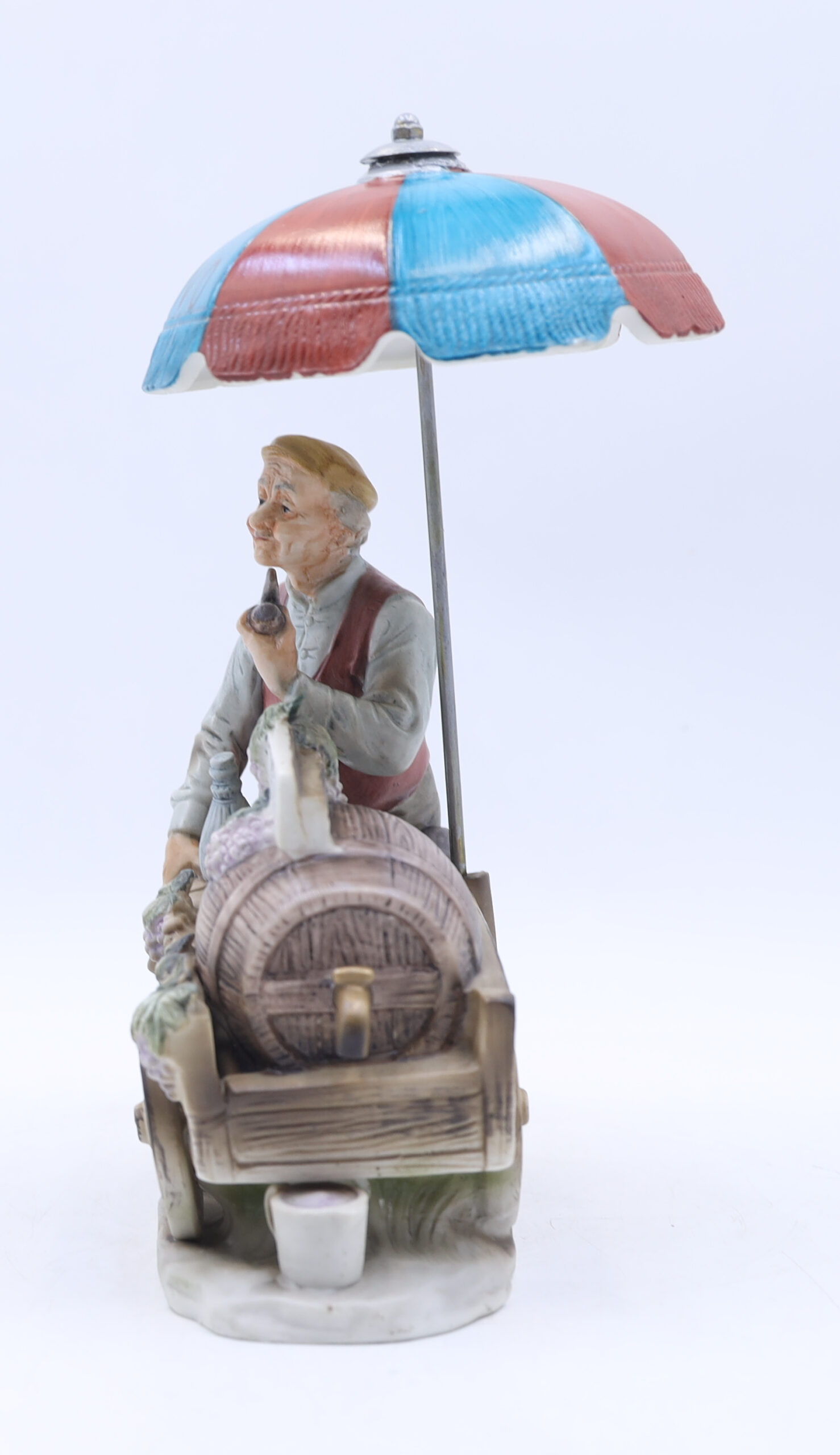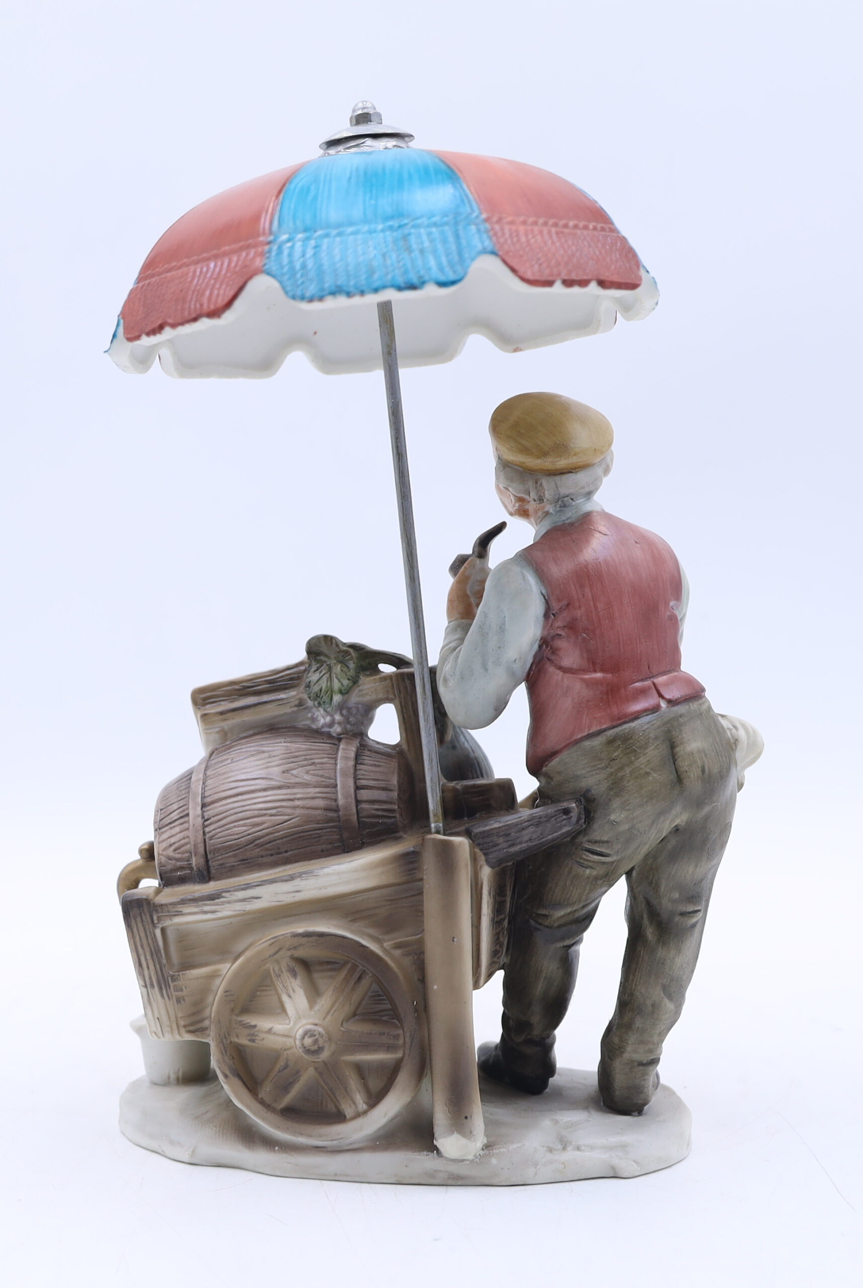 Biskwitowa figura, przedstawiająca sprzedawcę wina z II poł. XX w. Sygnowana.