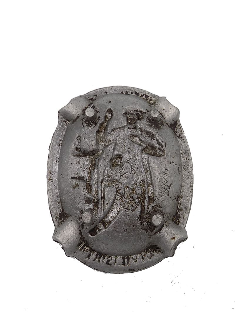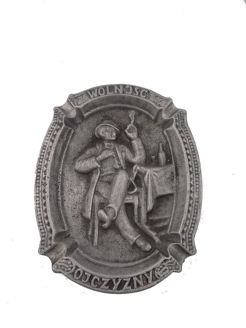 Zabytkowa popielniczka z cyny z napisem "Wolność Ojczyzny". Wymiary; 3 x 17 x 13 cm.