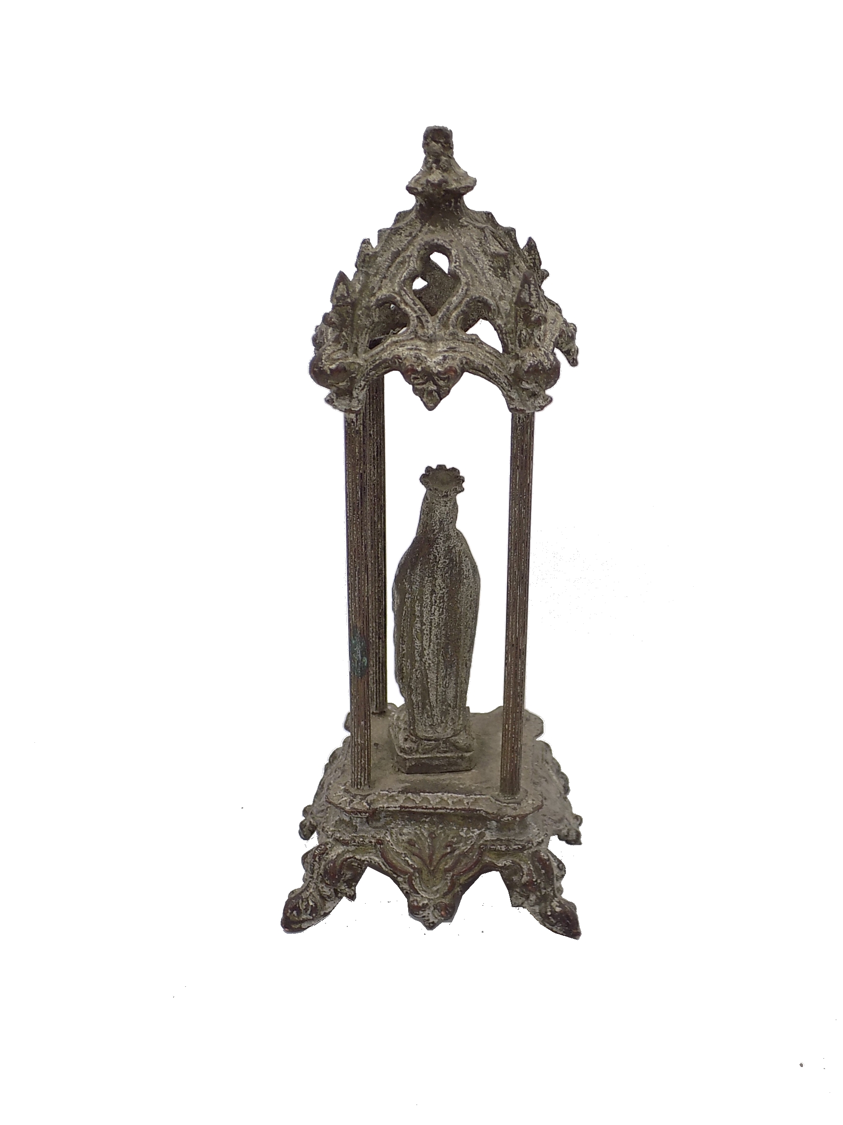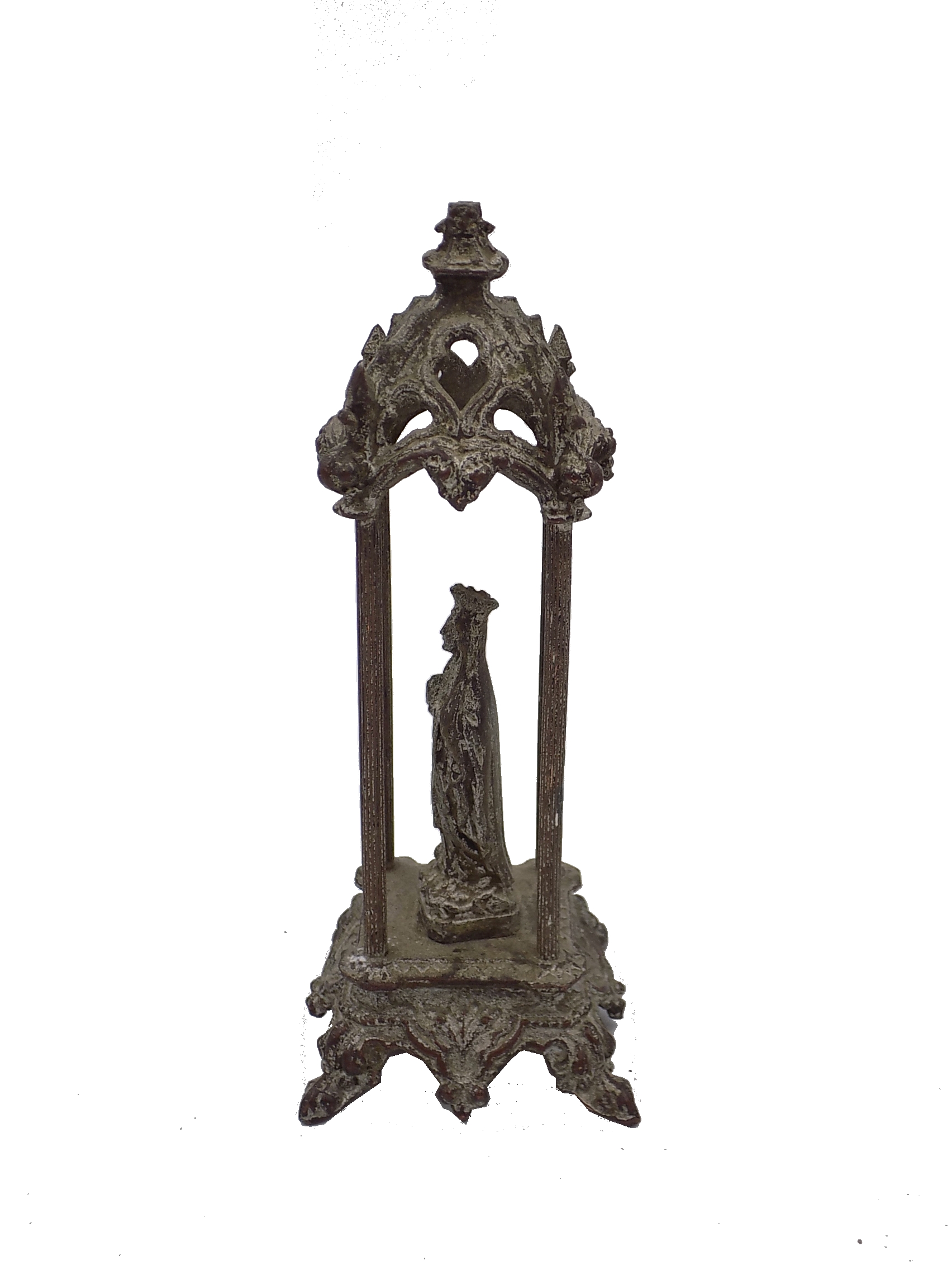 Zabytkowa ikonka prawdopodobnie z XIX w wykonana z żeliwa. Wymiary; wys.14,5 x 5,5 cm.