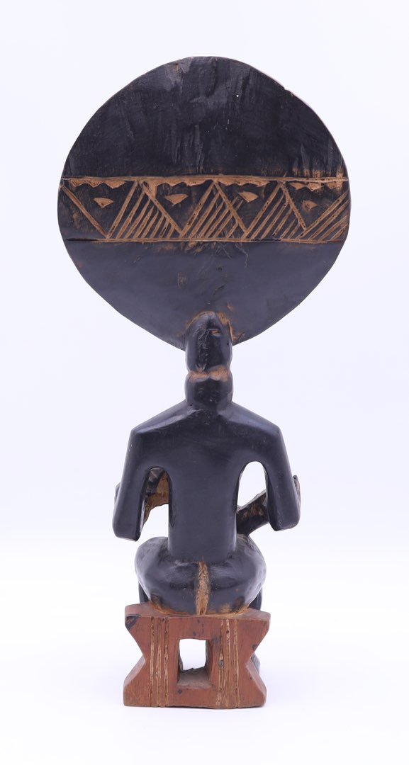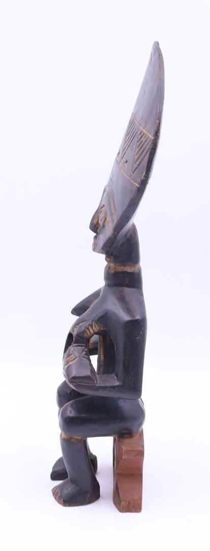 Rzeźba wykonana jest z hebanu, co nadaje jej niezwykłej elegancji i trwałości. Jej wymiary to imponujące 37,5 x 17 x 8 cm, dzięki czemu można ją wyeksponować w dowolnym pomieszczeniu, aby stała się centralnym punktem uwagi.