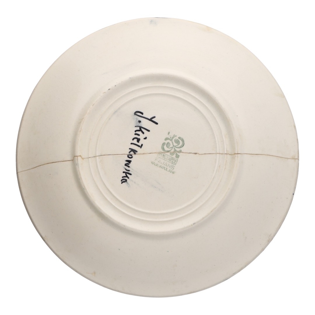 Talerz o średnicy 17,5 cm jest wyjątkowy nie tylko pod względem wizualnym, ale również historycznym. Pochodzi z fabryki fajansu we Włocławku, która od dziesięcioleci wznosi się na piedestale wyjątkowych dzieł ceramicznych. Kunszt ręcznego malowania, którym został ozdobiony, świadczy o wyjątkowych umiejętnościach artystki J. Kiełkowskiej, dzięki czemu talerz ten staje się wyjątkowym dziełem sztuki.