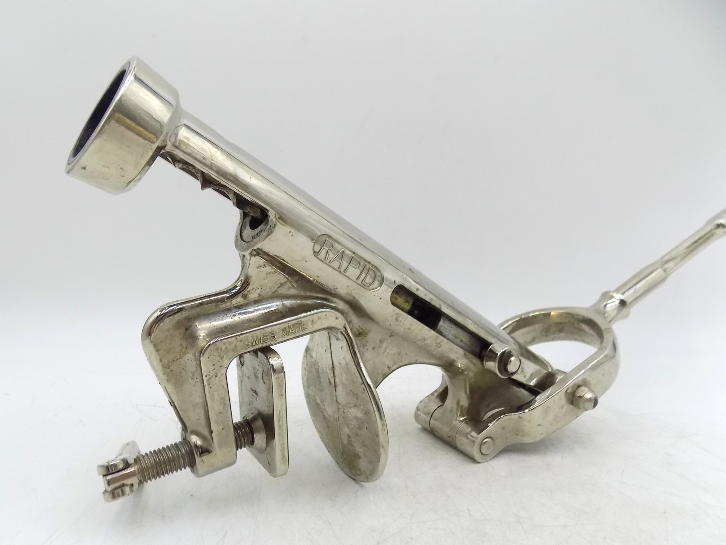 Oryginalny charakter tego korkociągu przejawia się nie tylko w jego funkcjonalności, ale także w dbałości o detale. Solidna konstrukcja i starannie wykonane wykończenia przyciągają wzrok, podkreślając szlachetny charakter produktu. Mimo upływu lat korkociąg szwajcarskiej marki RAPID zachował swoją sprawność, świadczącą o jego trwałości.