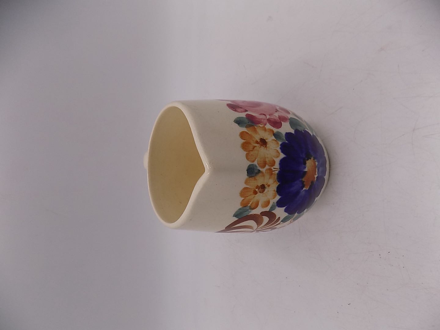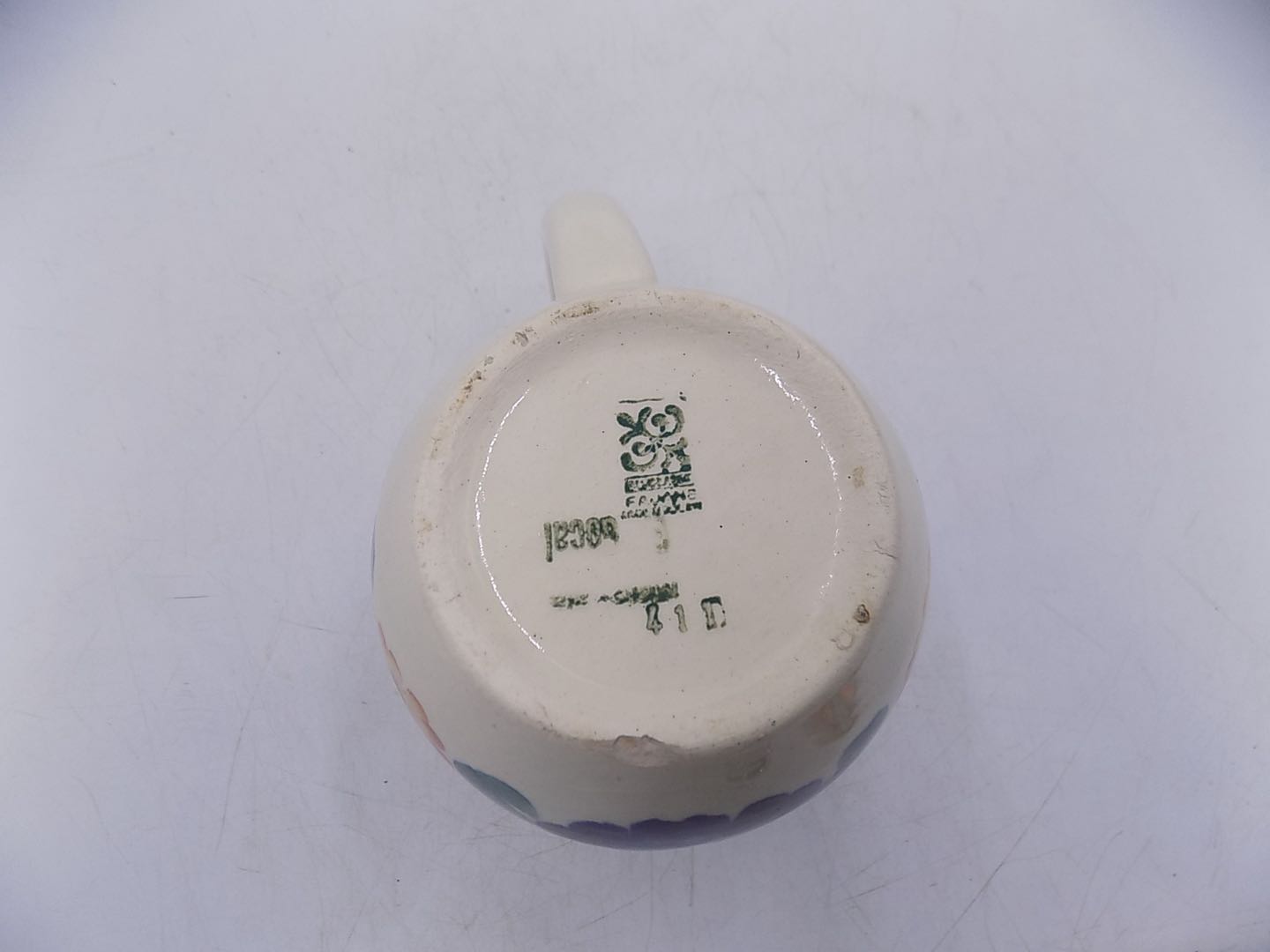 Fajansowy kufel z Włocławka z lat 70/80-tych. Sygnowany. Ręcznie malowany. Wymiary; wys.13 cm.