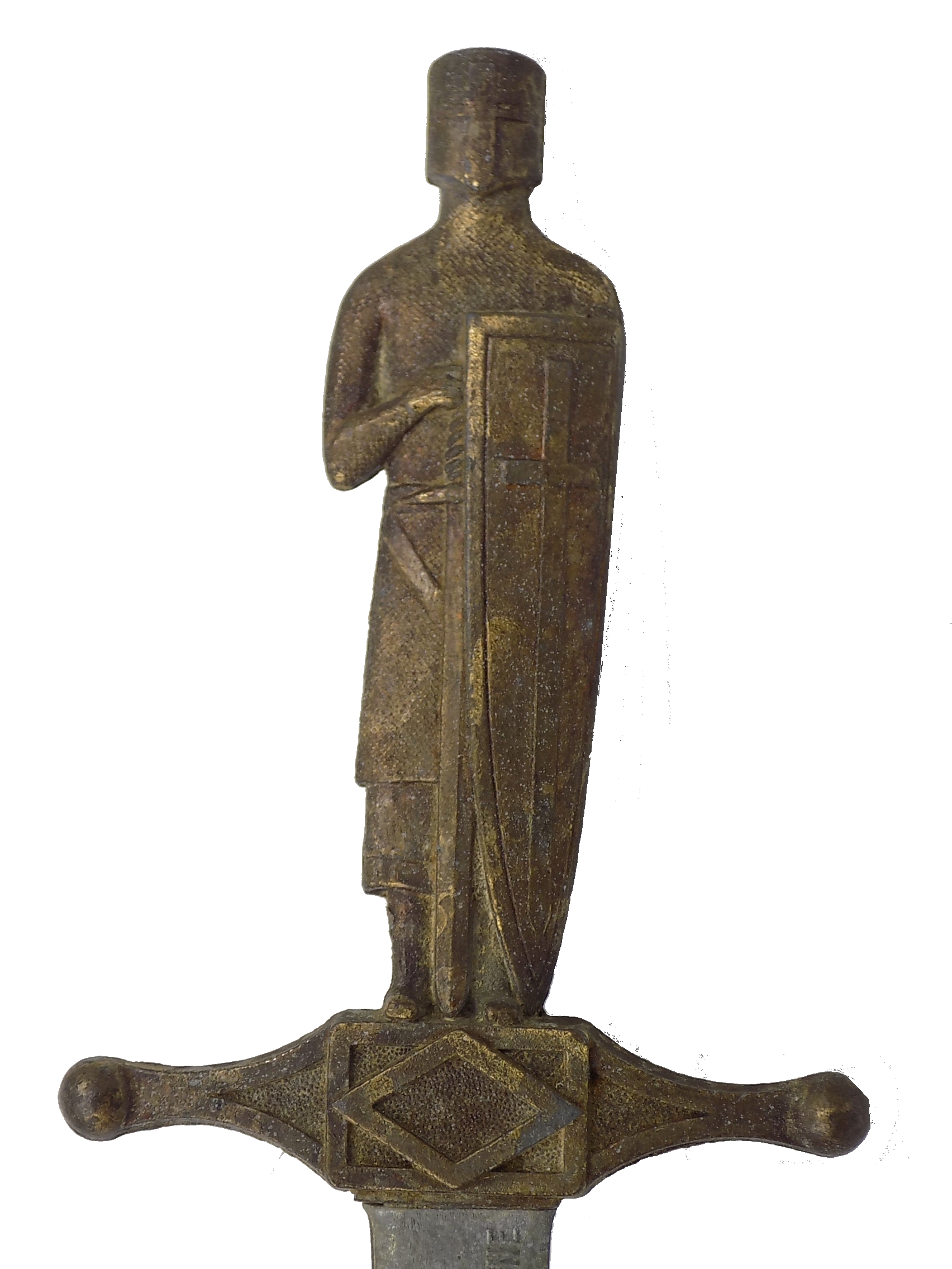 Kolekcjonerski nóż do listów przedstawiający miniaturkę miecza Samarytanina. Sygnowany. Wymiary; 31 x 6,8 cm.