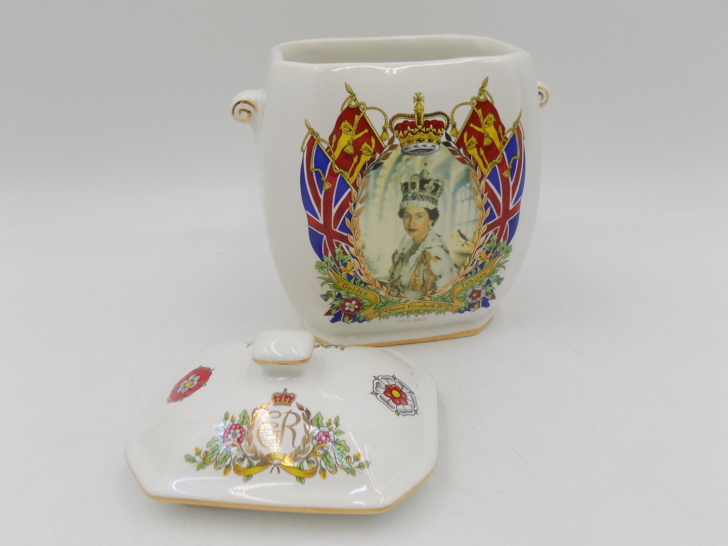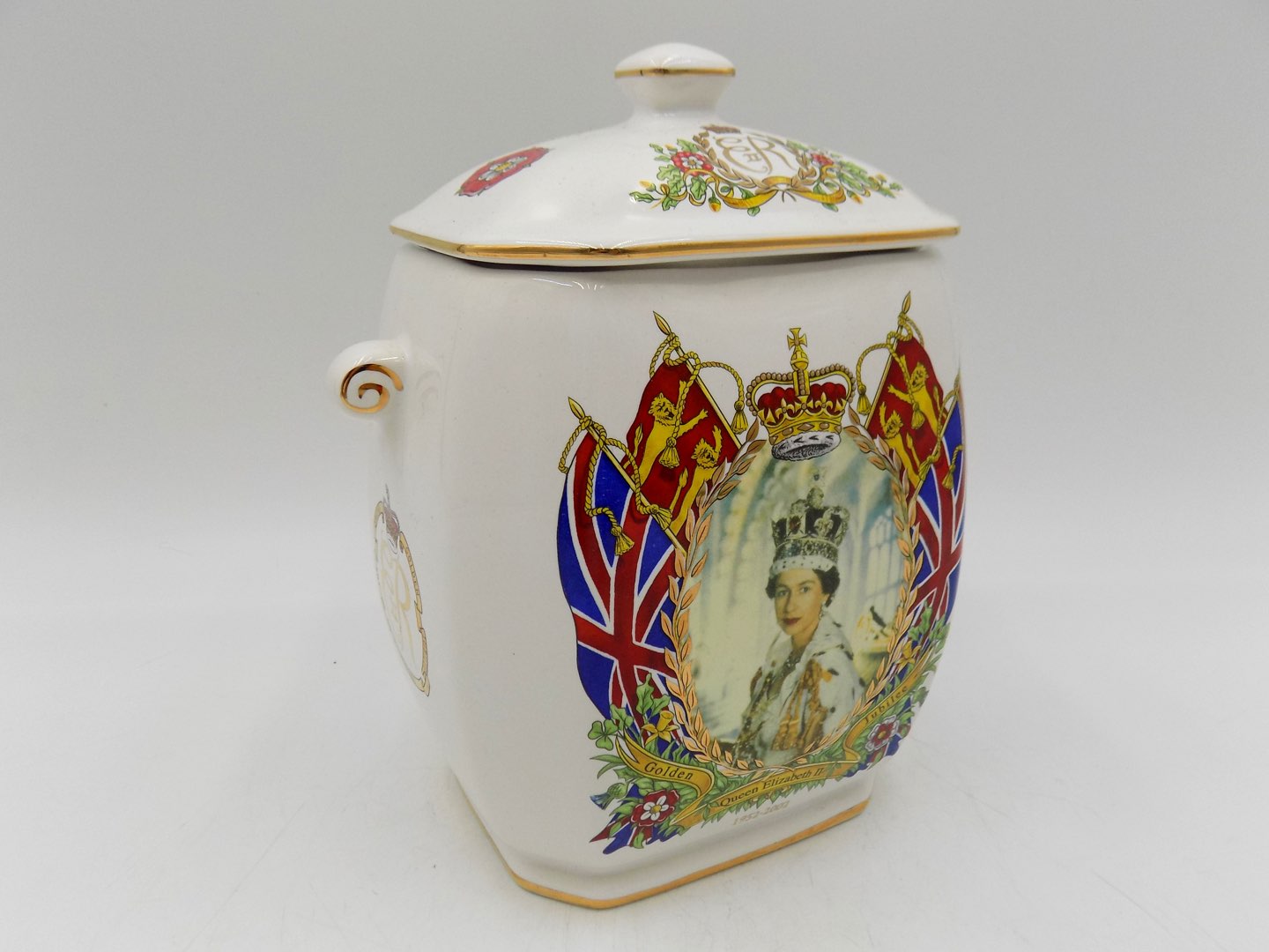Puszka na herbatniki z okazji złotego jubileuszu królowej Elżbiety II - elegancja i historia w jednym