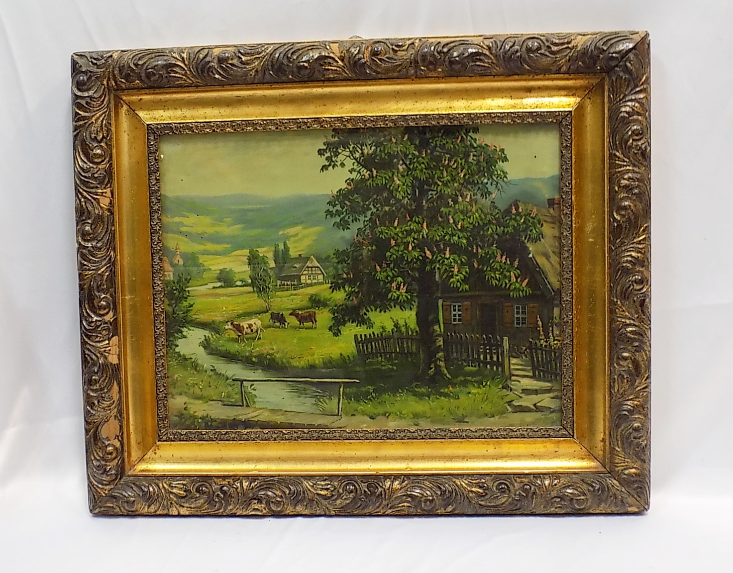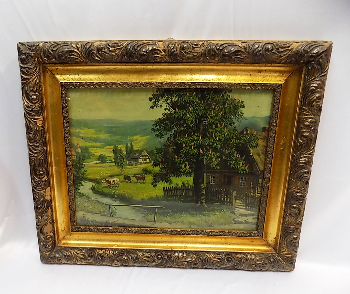 Oleodruk z XIX w. Ubytki w ramie. Wymiary;57 x 68 cm.