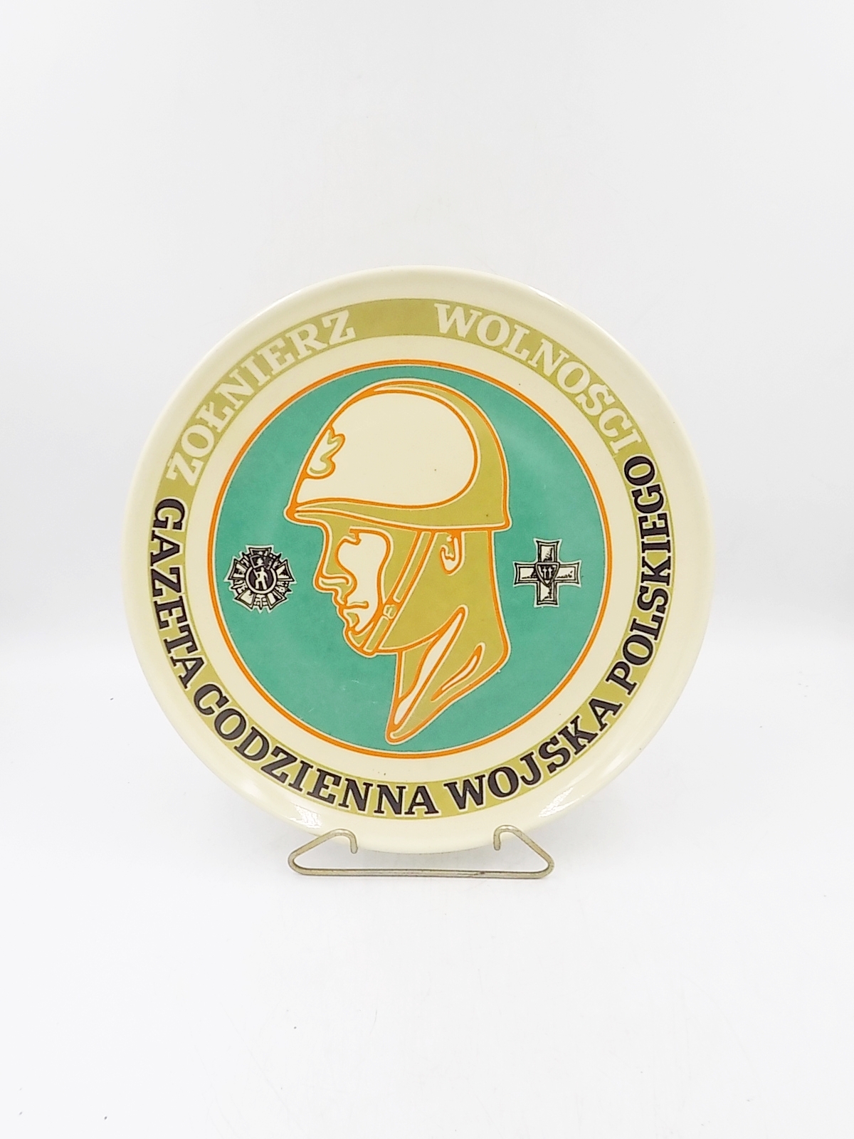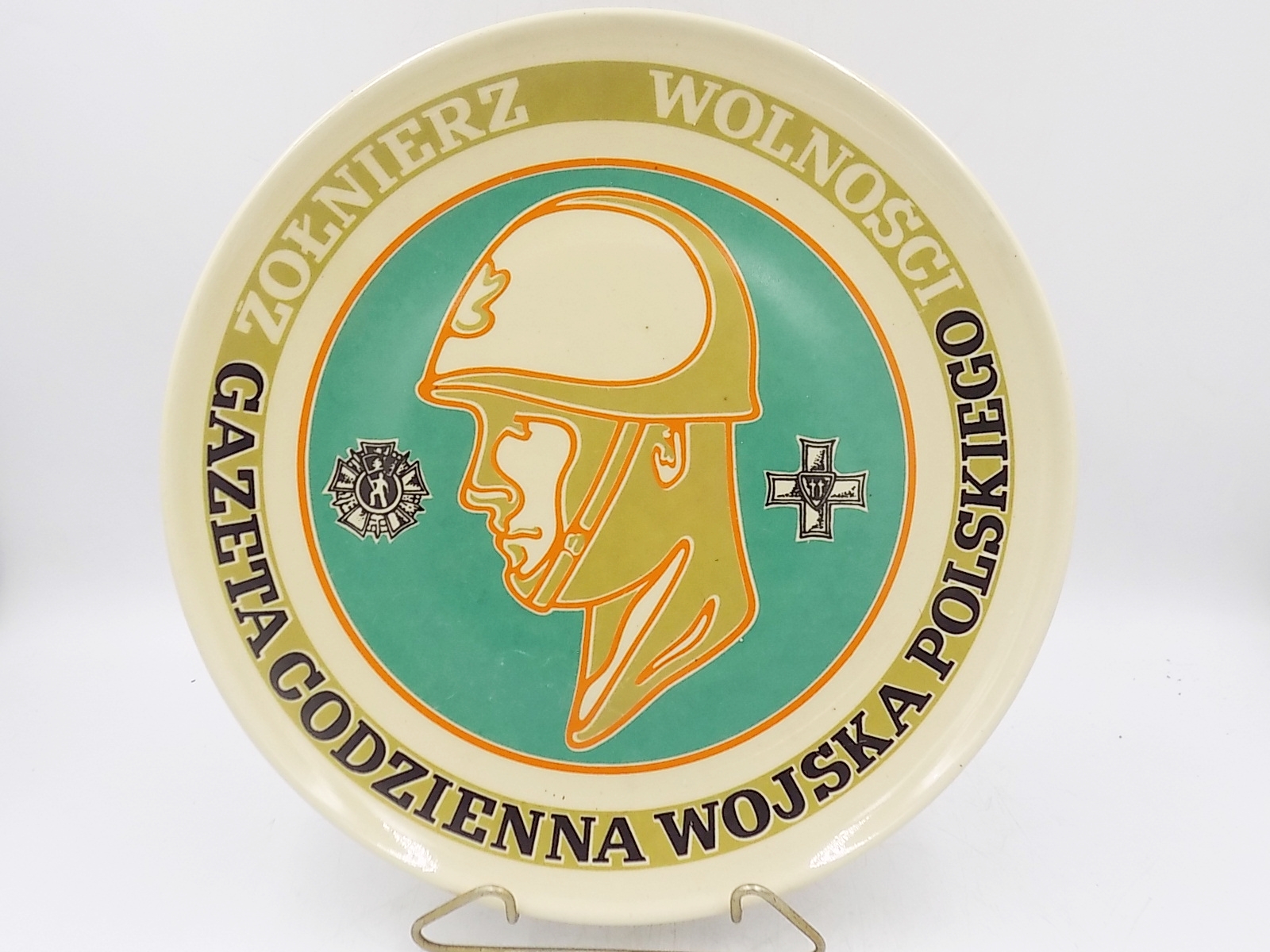 Żołnierz Wolności Gazeta codzienna Wojska Polskiego. Talerz pamiątkowy z okresu PRL. Porcelit Pruszków. Sygnowany. Wymiary; 27,5 cm.