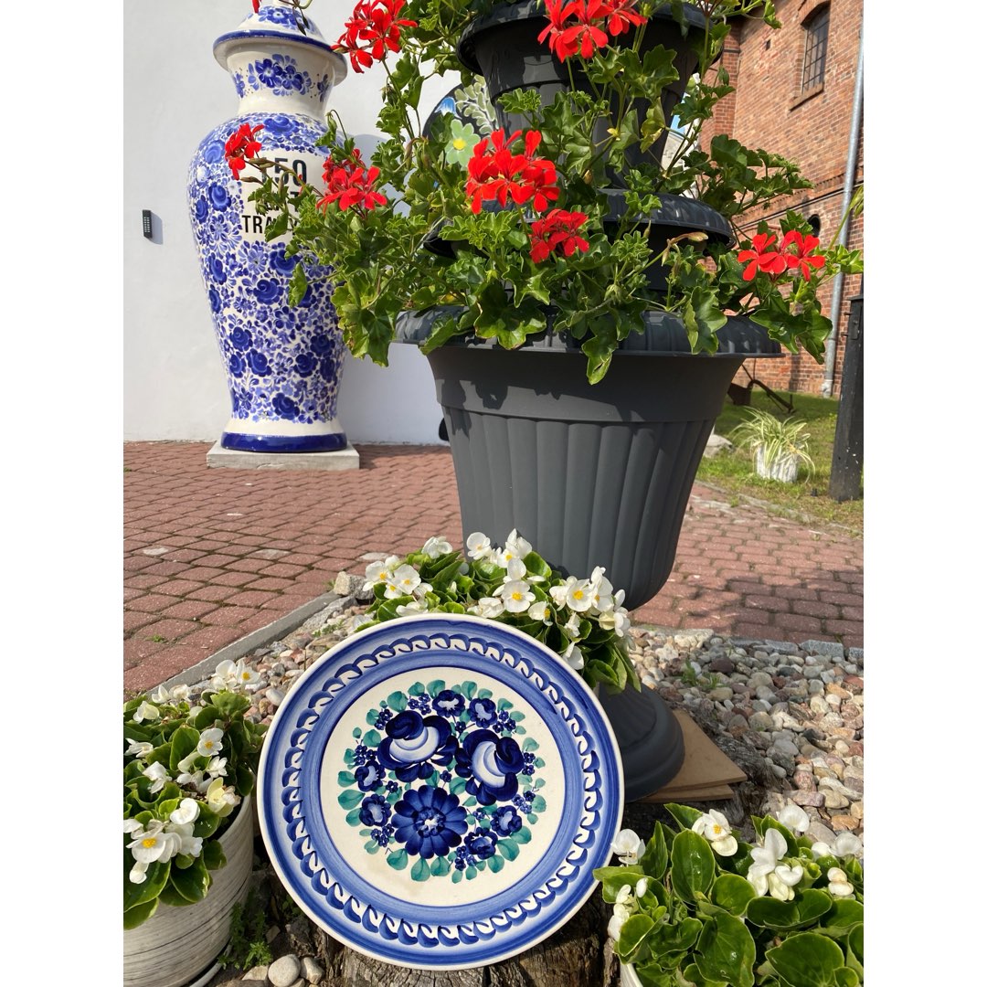 Fajansowa patera z Włocławka z lat 70/80-tych. Sygnowana. Ręcznie malowana. Wymiary; 30 cm.