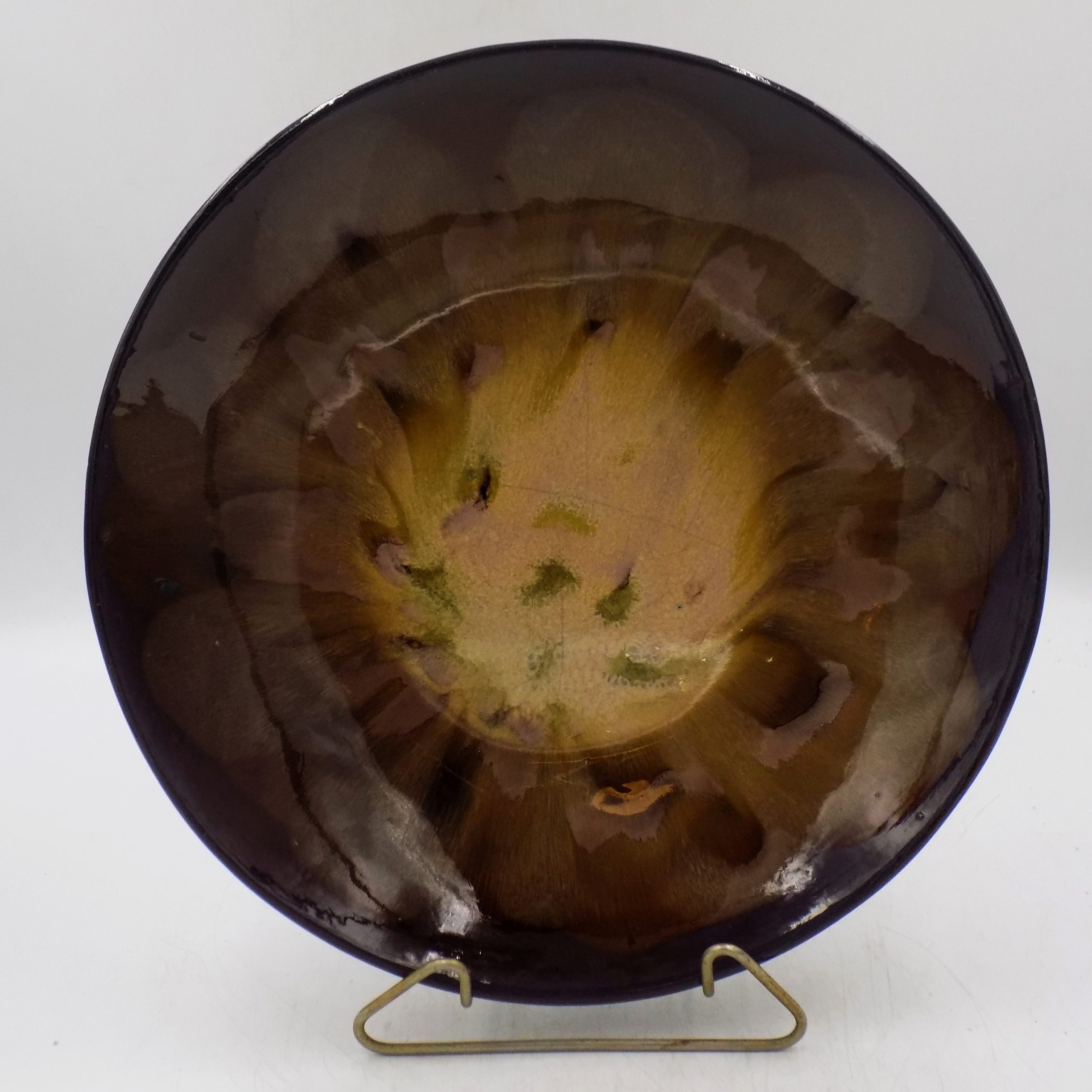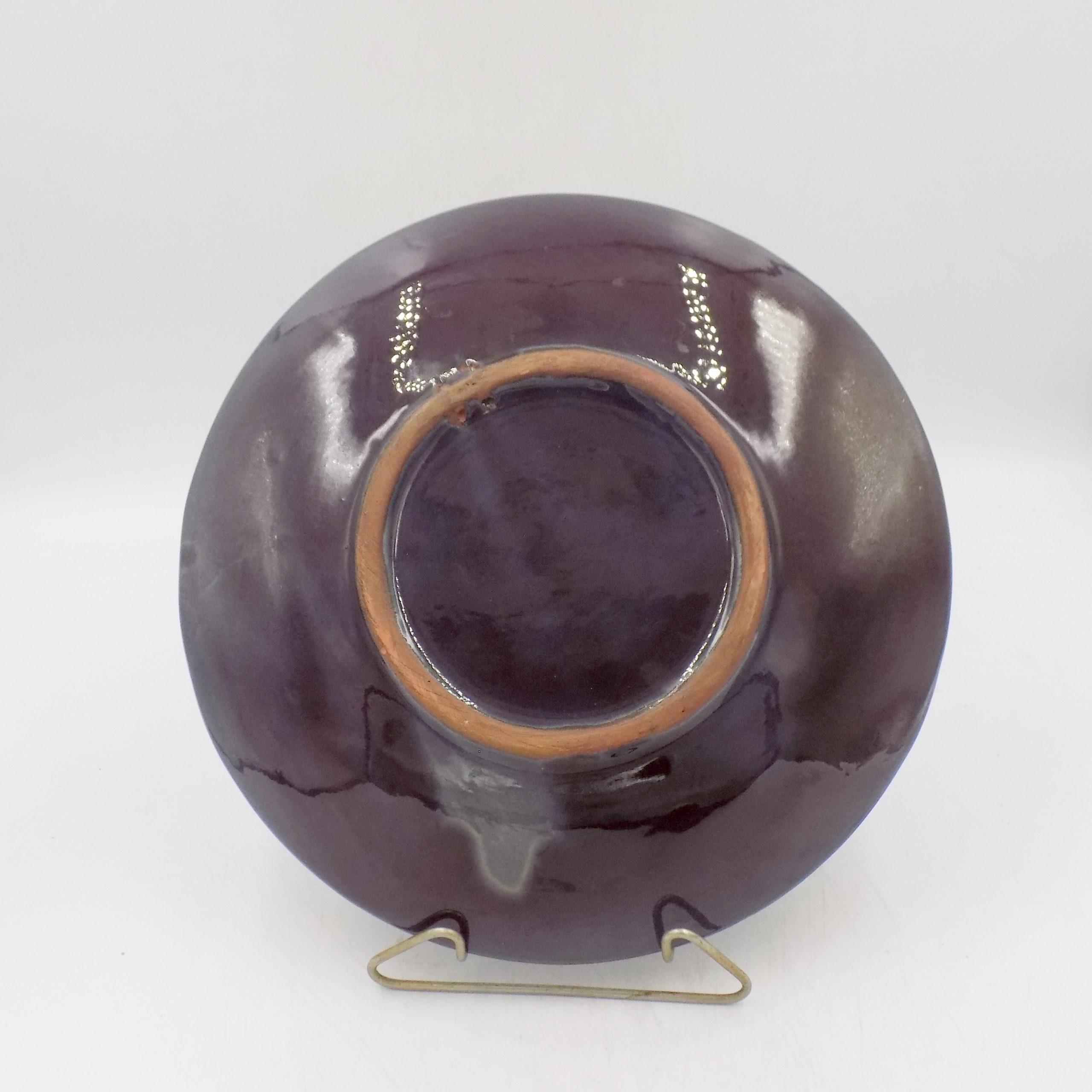 Patera z czerwonej glinki z nietuzinkową glazurą ze Spółdzielni Pracy Przyjaźń Włocławek. Wymiary; 4 x 26 cm.