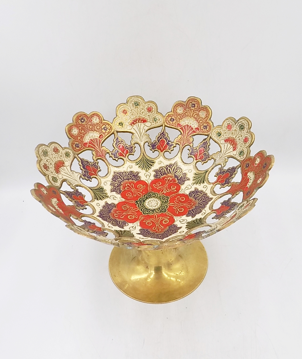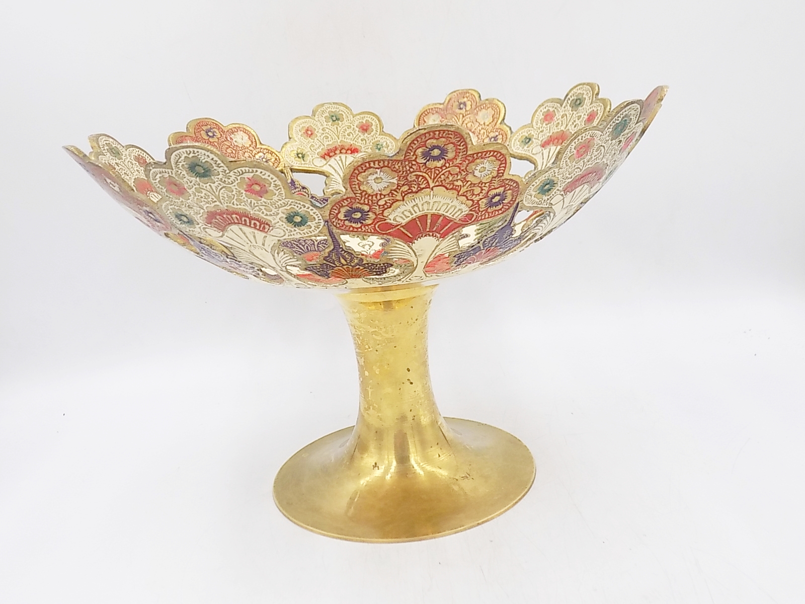 Patera emaliowana z mosiądzu z II poł.XX w. Wymiary; wys.18,5 x 27 cm.