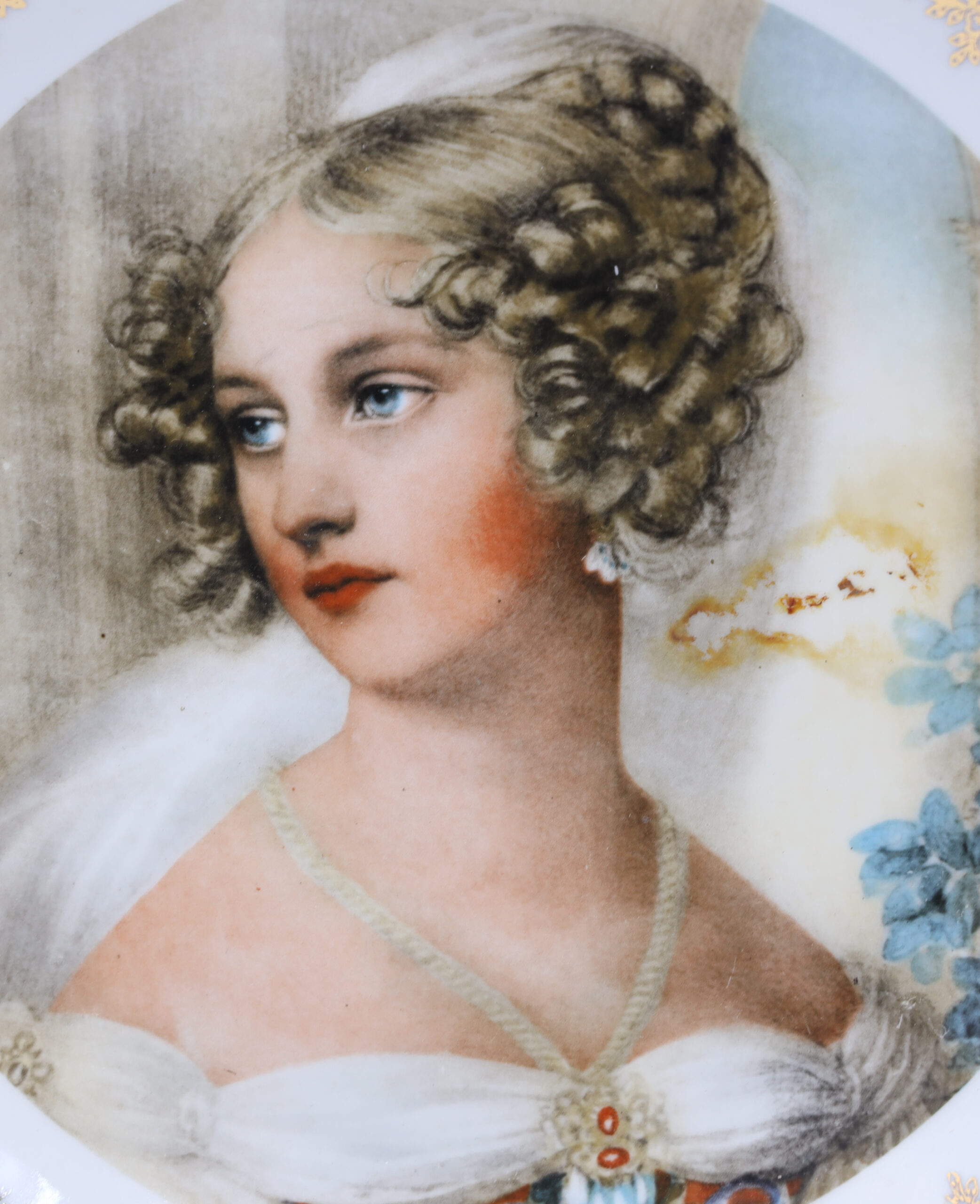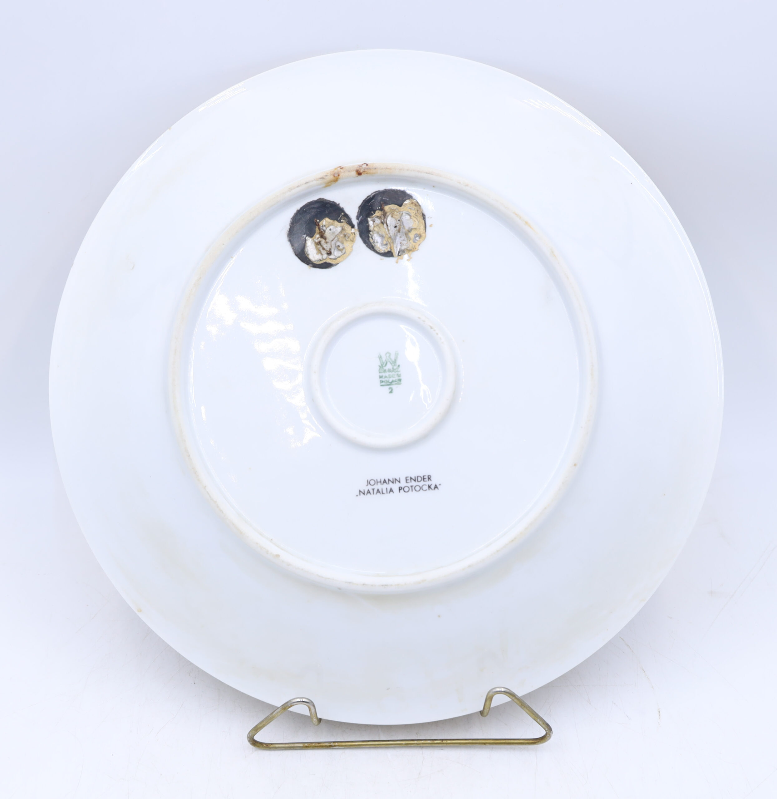 Porcelanowy talerz dekoracyjny z Fabryki Porcelany Krzysztof w Wałbrzychu. Sygnatura stosowana po 1953 roku. Natalia Potocka, Johann Ender.