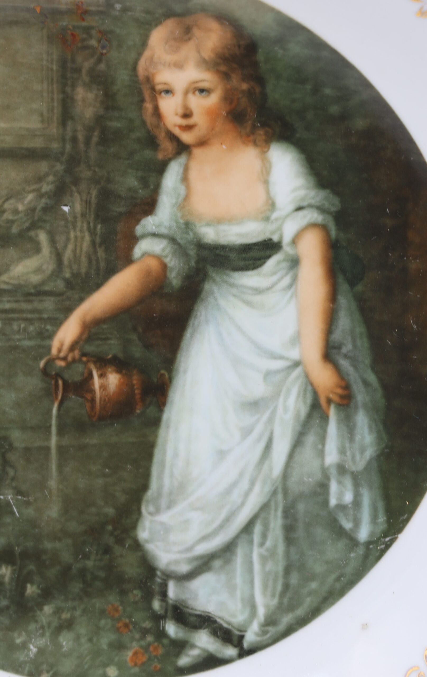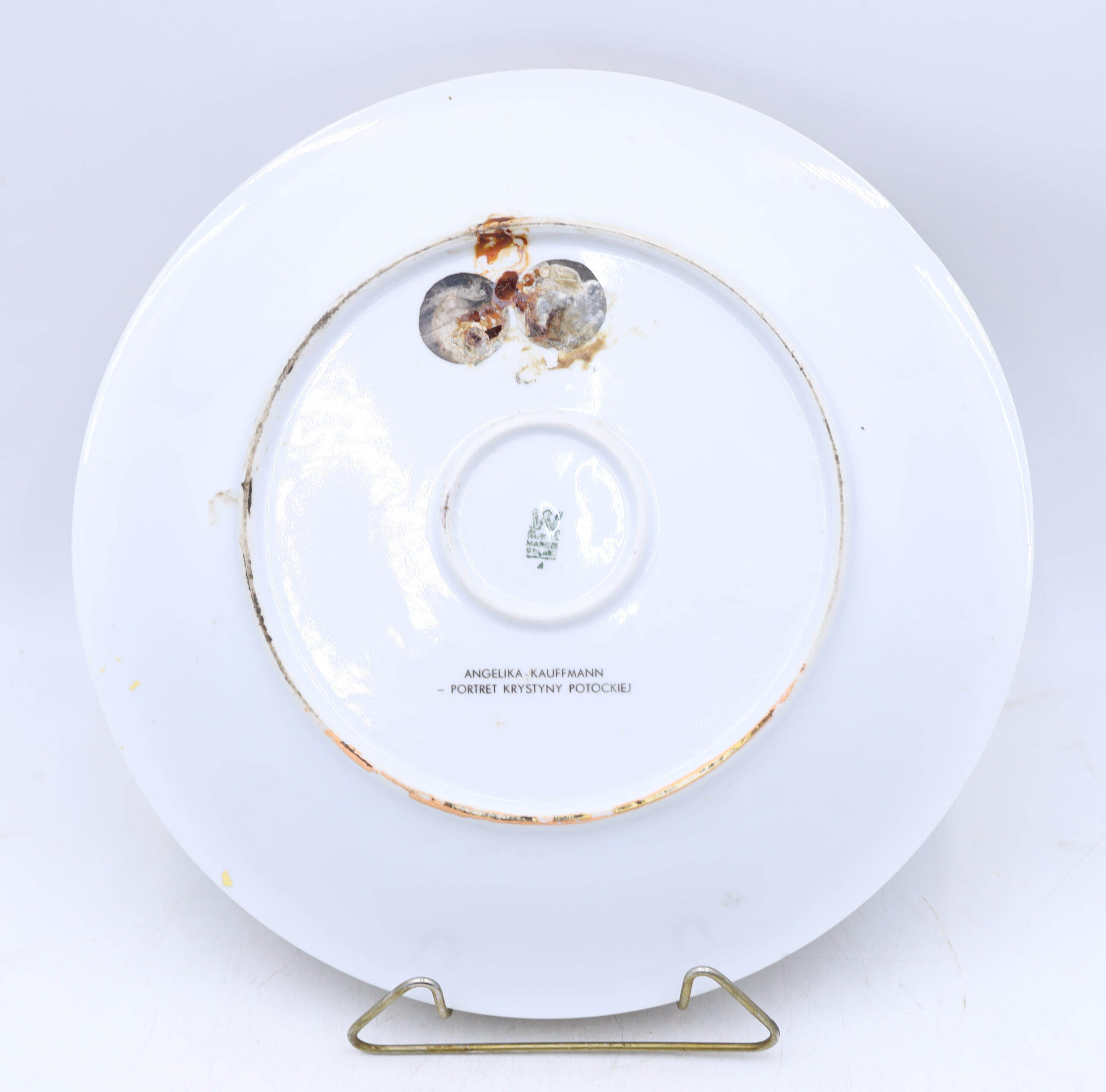 Porcelanowy talerz dekoracyjny z Fabryki Porcelany Krzysztof w Wałbrzychu. Sygnatura stosowana po 1953 roku. Portret Krystyny Potockiej, Angelika Kauffmann.