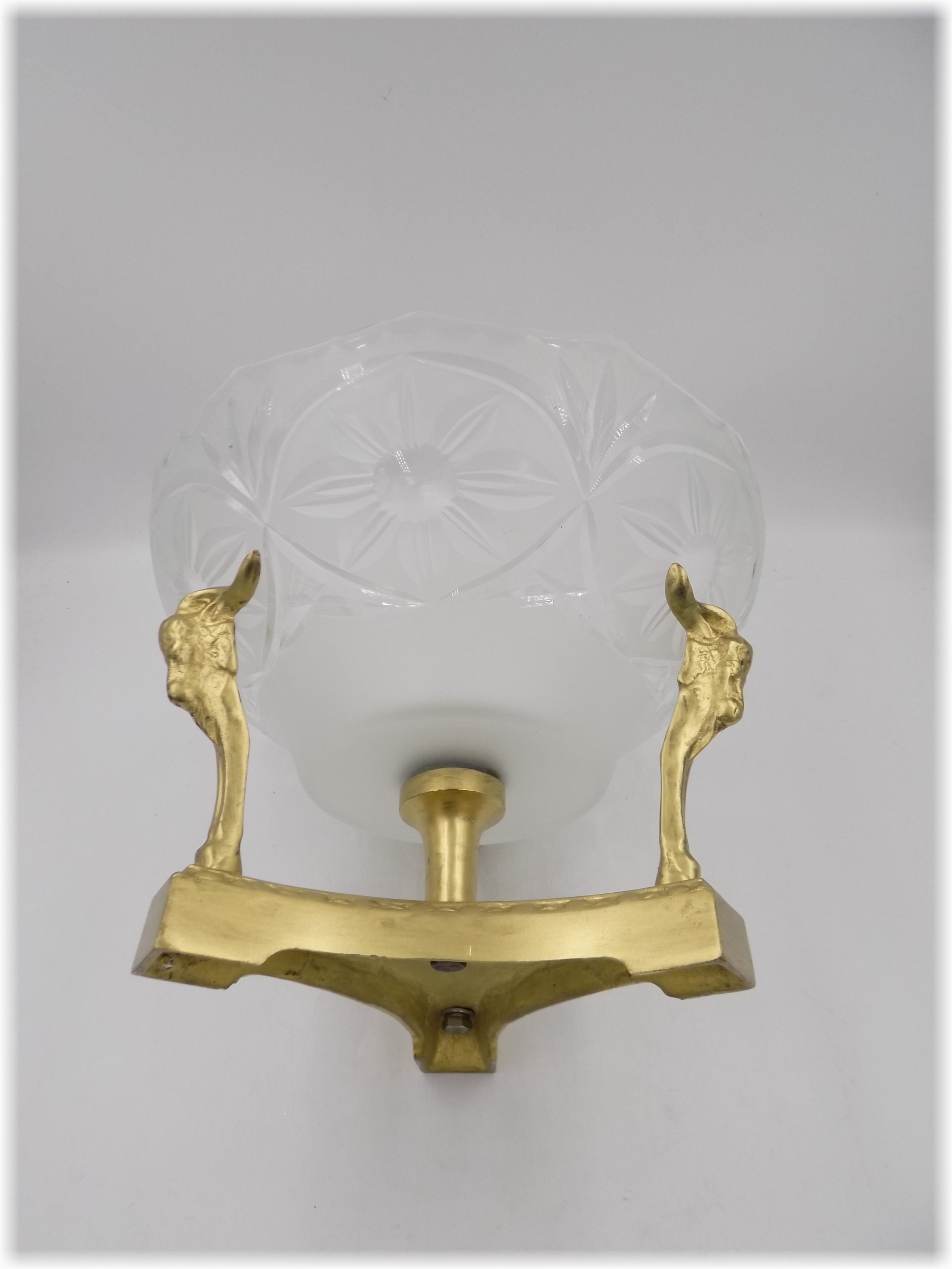 Owocarka osadzona na baranich rogach z mosiądzu. Pochodzi prawdopodobnie z PRL. Wymiary; wys.17,5 x 24,5 cm
