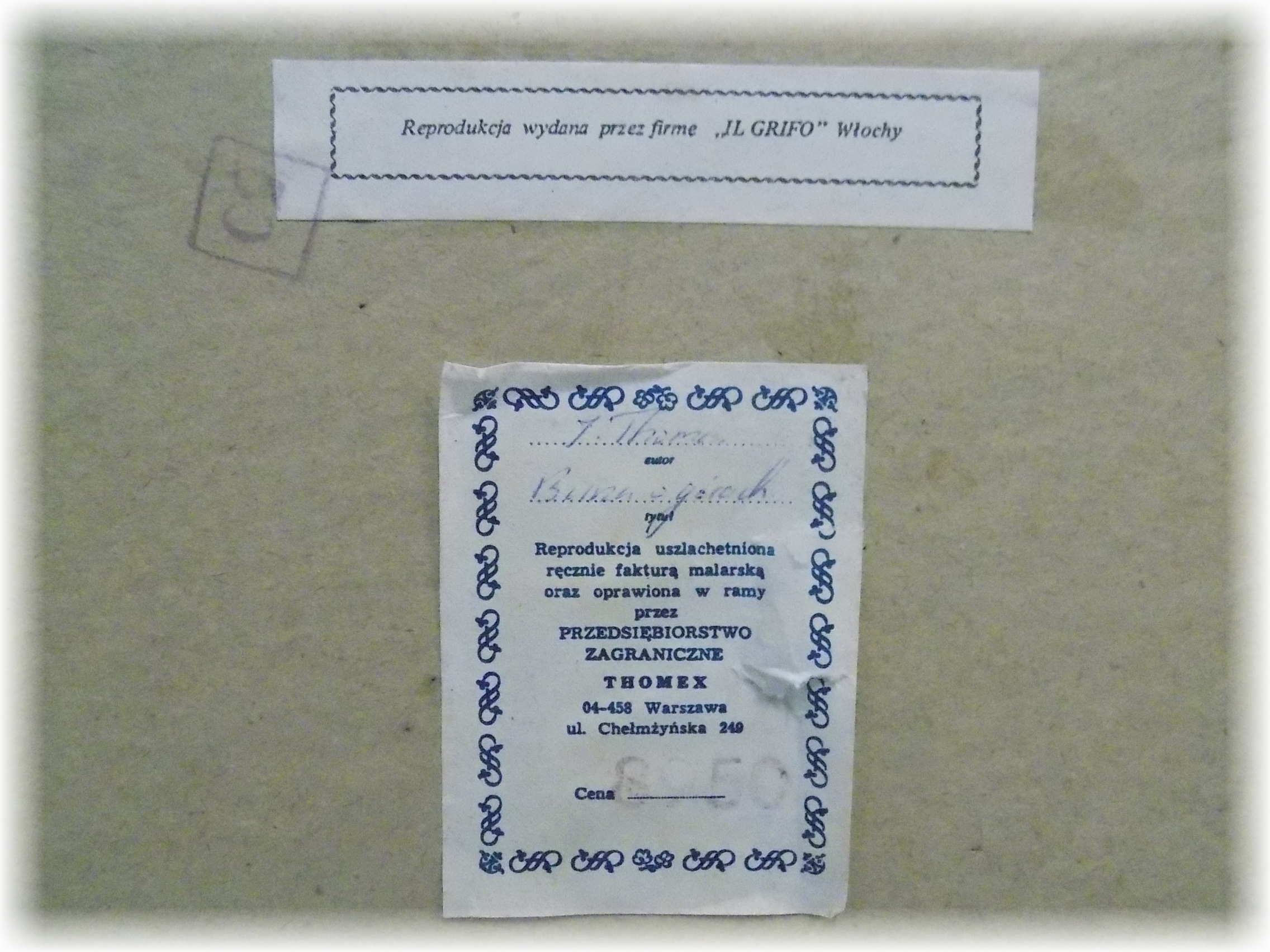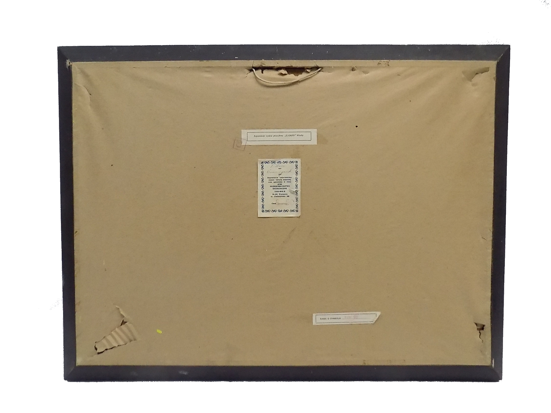 Reprodukcja uszlachetniona ręcznie fakturą malarską na dykcie oprawiona w ramę z okresu PRL. Wymiary; 60 x 80(48 x 68) cm.
