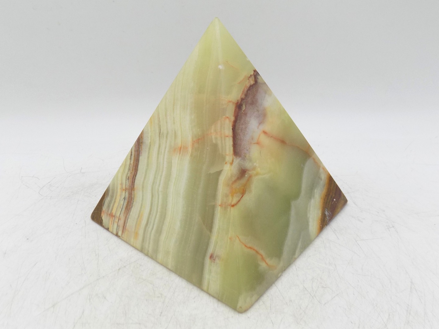 Starożytni Egipcjanie doskonale rozumieli moc geometrycznej formy piramidy. Dla nich było to centrum mocy, zbierające energię z otaczającego wszechświata i koncentrujące ją w jednym punkcie - wierzchołku piramidy. Ta konkretna piramida z onyksu, ukazująca na zdjęciach swoje niedoskonałości, wnosi do współczesnego świata wiarę w ducha i starożytną wiedzę.