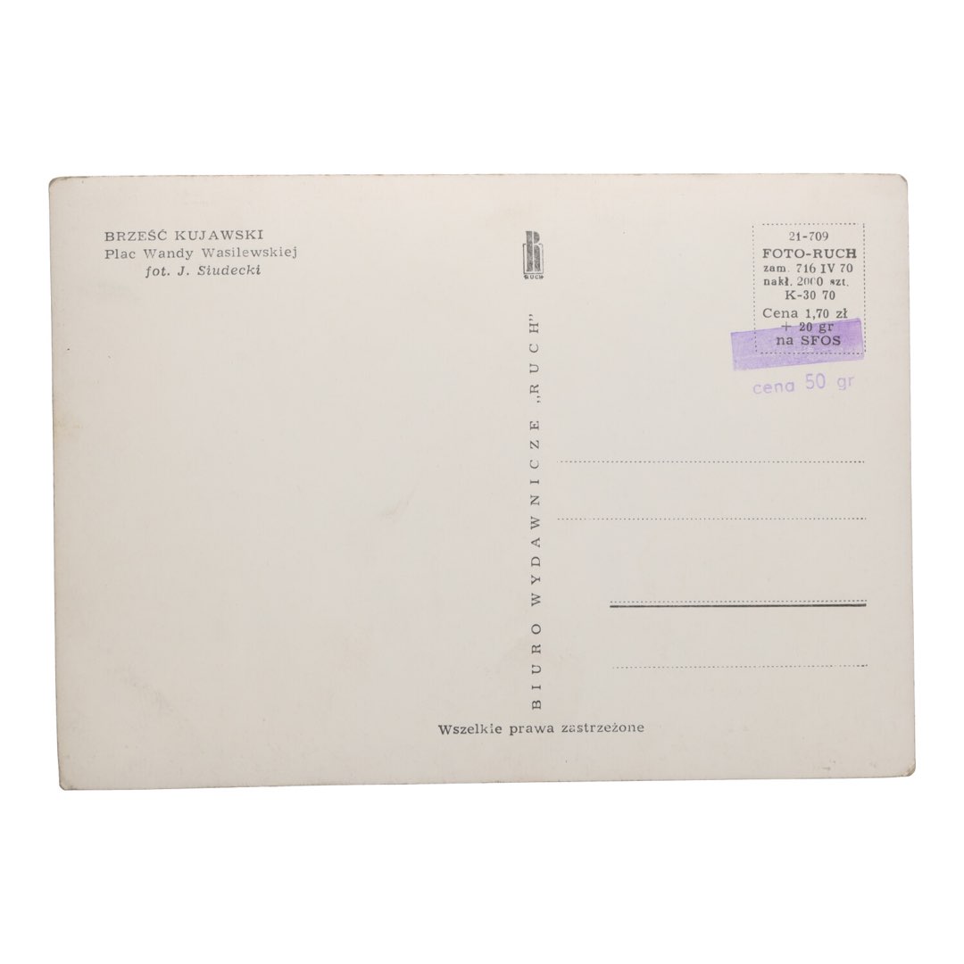 Podsumowując, pocztówka PRL Brześć Kujawski z Placem Wandy Wasilewskiej to nie tylko kartka, to kawałek historii i nostalgii. Dodaj tę wyjątkową pamiątkę do swojej kolekcji lub podaruj ją jako prezent, zamawiając już teraz!