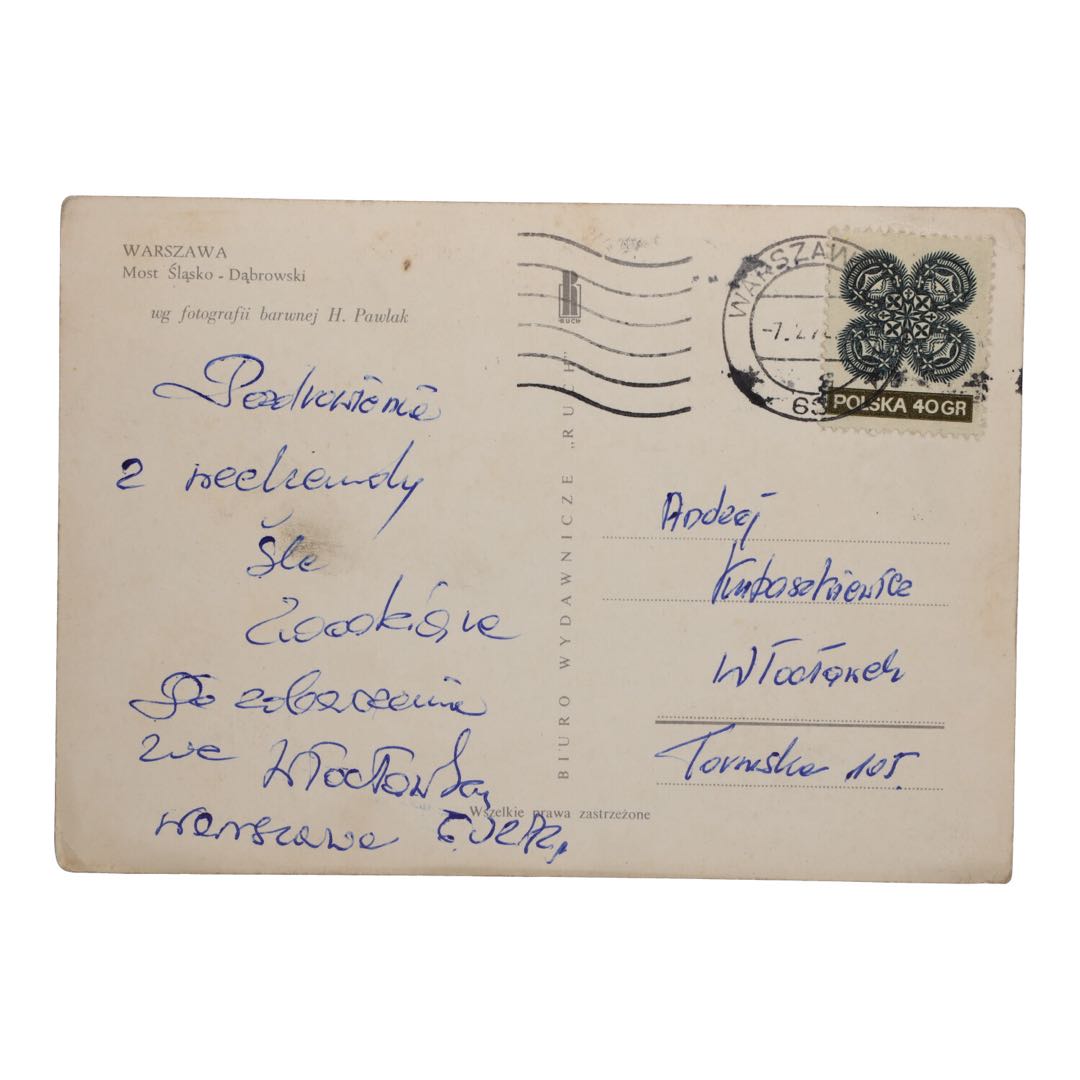 Pocztówka Warszawa, most Śląsko-Dąbrowski, komunistyczne pocztówki, Warszawa na starej pocztówce, kolekcjonerskie pocztówki Warszawa, pocztówki retro