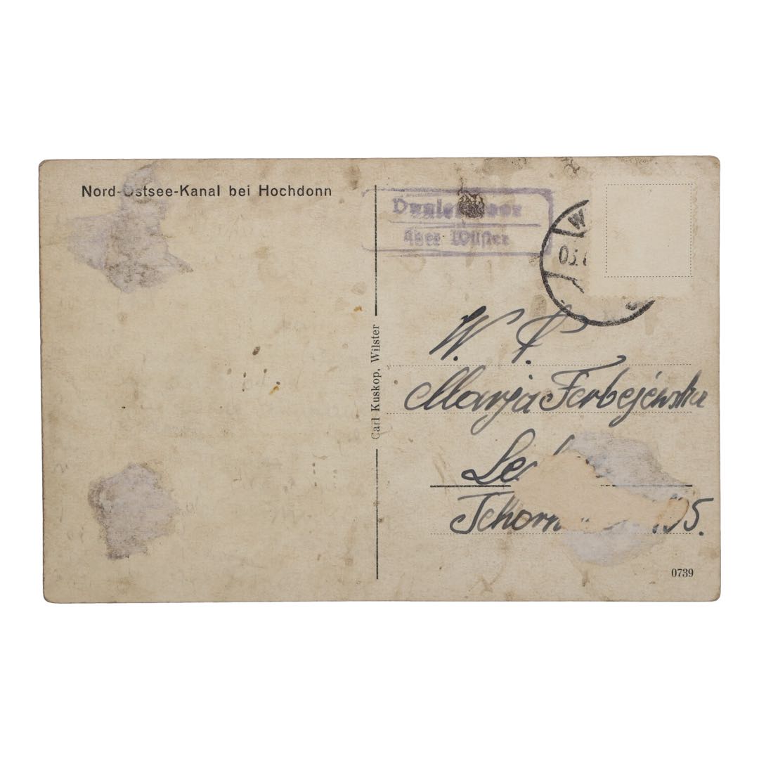 Cechy: Autentyczna pocztówka ze Szlezwiku-Holsztynu przedstawiająca Północny Kanał Bałtycki w Hochdonn z czasów II wojny światowej.