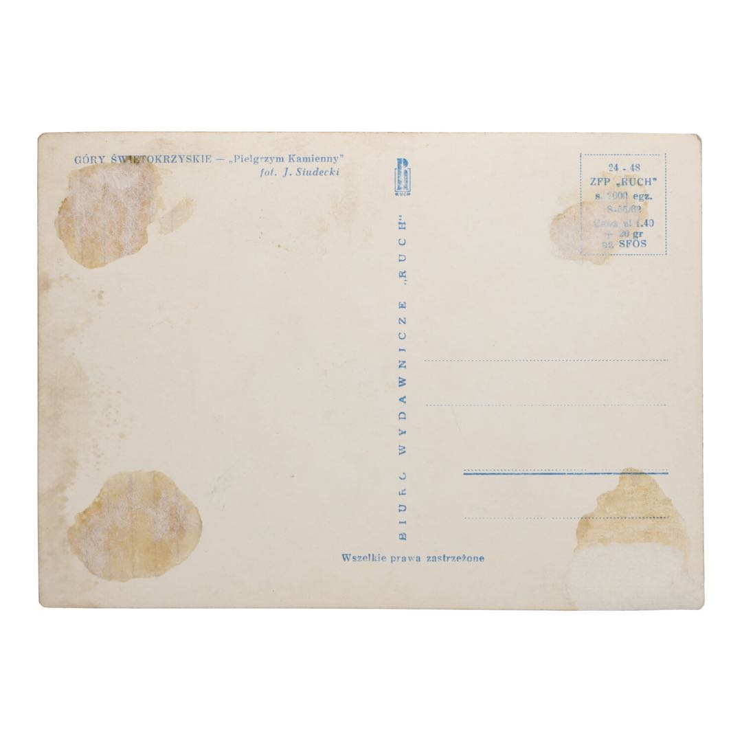 Cofnij się w czasie z naszą wyjątkową pocztówką przedstawiającą Kamiennego Pielgrzyma z malowniczych Gór Świętokrzyskich, cenną pamiątką z czasów PRL. Ta wyjątkowa pocztówka o wymiarach 14,5 x 10,5 cm dostępna jest w atrakcyjnej cenie 25 zł. To nie tylko doskonała pamiątka, ale także cenny eksponat kolekcjonerski dla miłośników historii i retro.