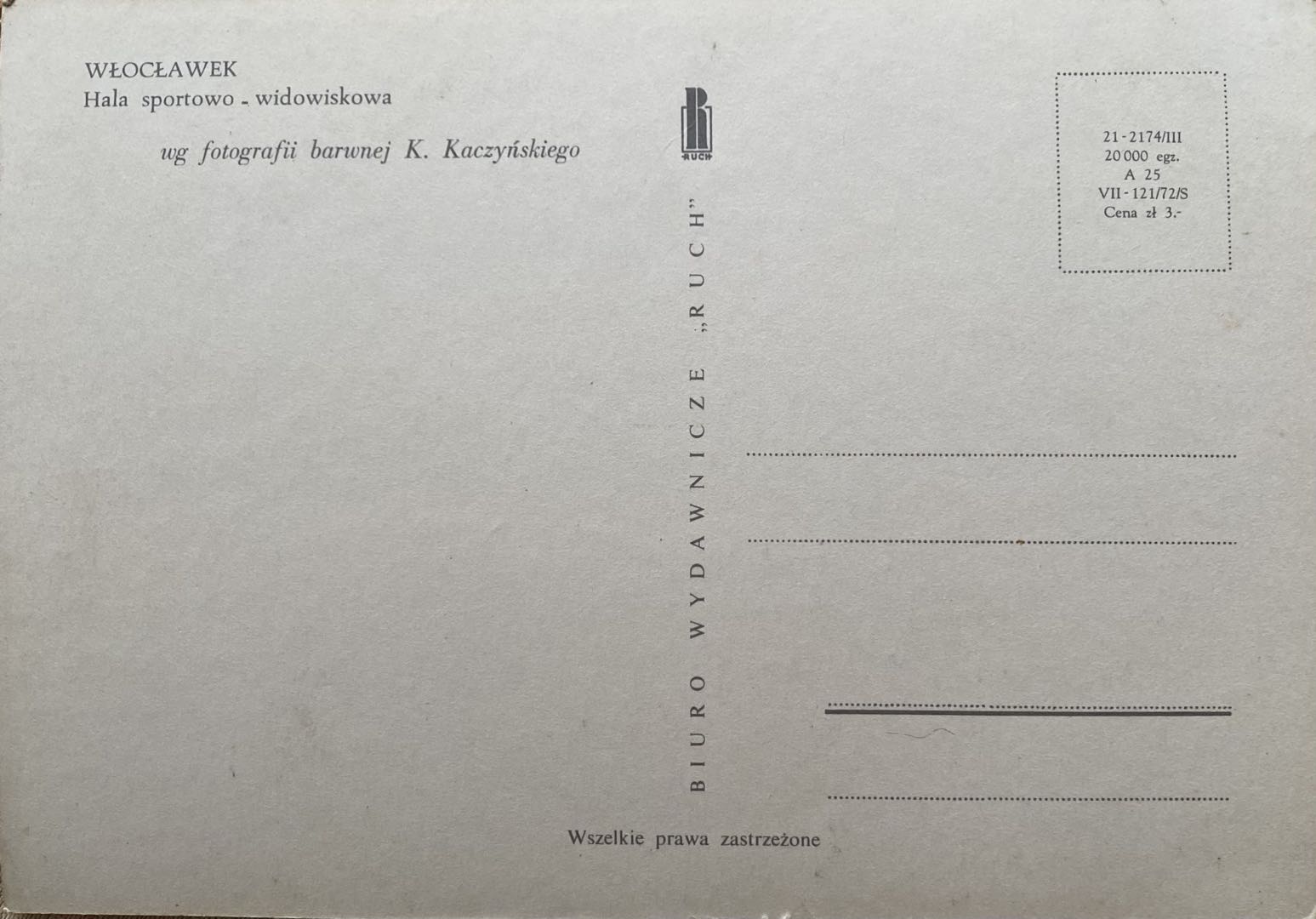 Odkryj pocztówkę z Włocławka z okresu PRL: Hala Widowiskowo-Sportowa w wymiarze 10 x 14,5 cm!