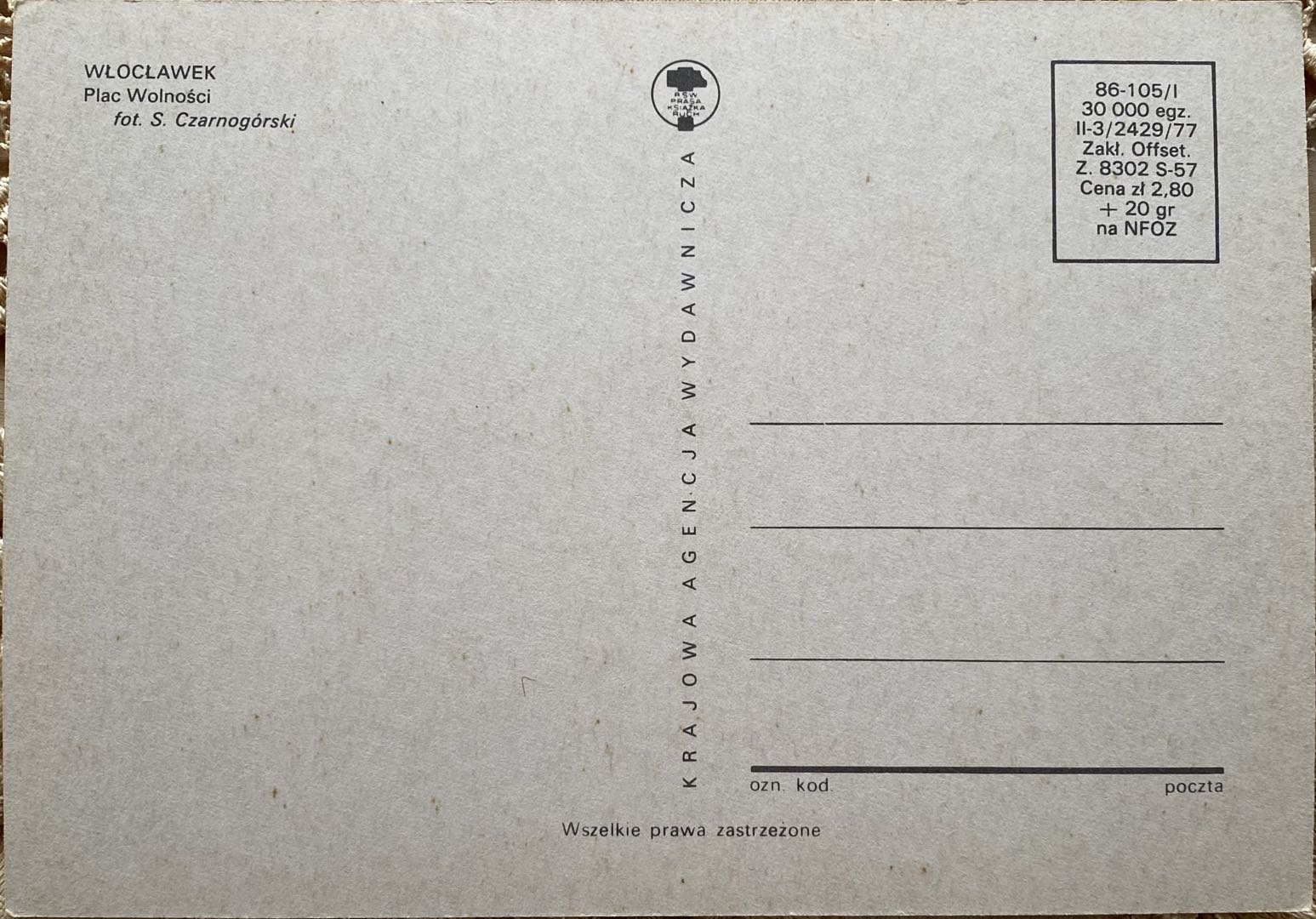 Odkryj Plac Wolności we Włocławku z pocztówką PRL: kawałek historii w Twoich rękach!