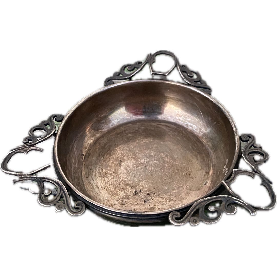 Popielniczka posrebrzana z okresu PRL. Sygnowana. Wymiary; wys.2,5 x 11 cm, miseczka 8 cm.