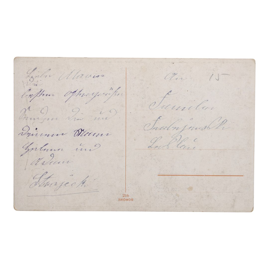 Nasza pocztówka ma wymiary 14 x 9 cm i charakteryzuje się pięknym, starannie wykonanym projektem, który odzwierciedla styl tamtych czasów. To dzieło sztuki.