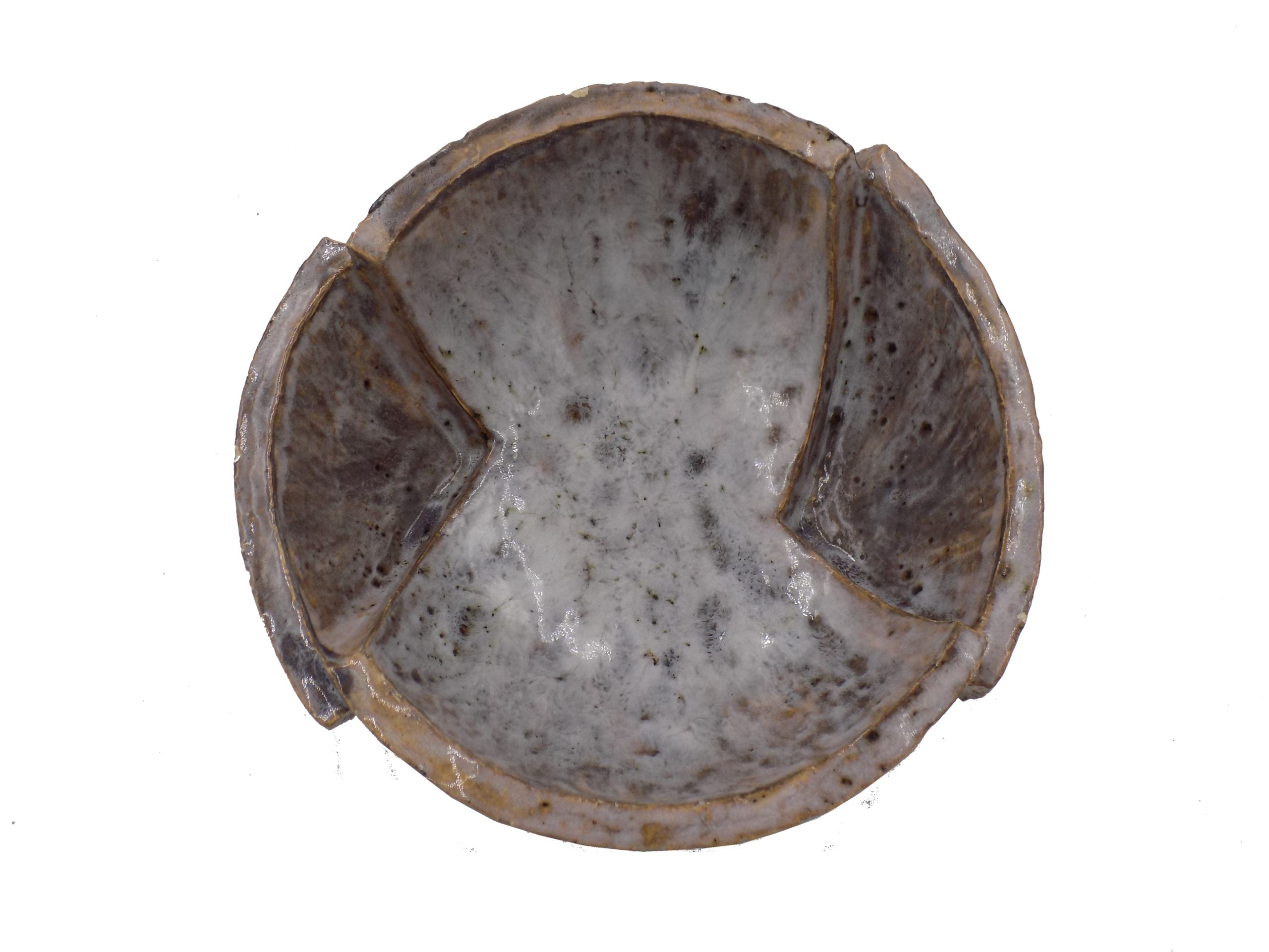 Glazurowana forma dekoracyjna. Pochodzenie nieokreślone. Forma i glazura nietuzinkowa. Wymiary; wys.9 x 19,5 x 19 cm.