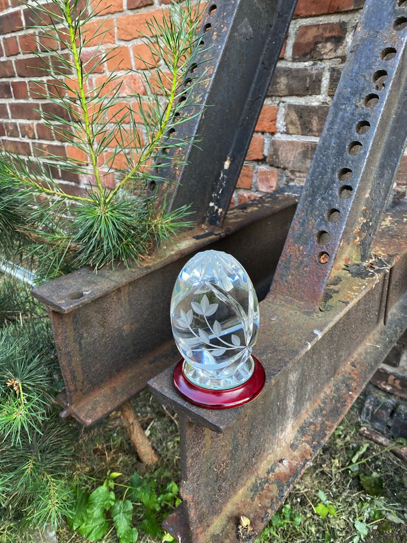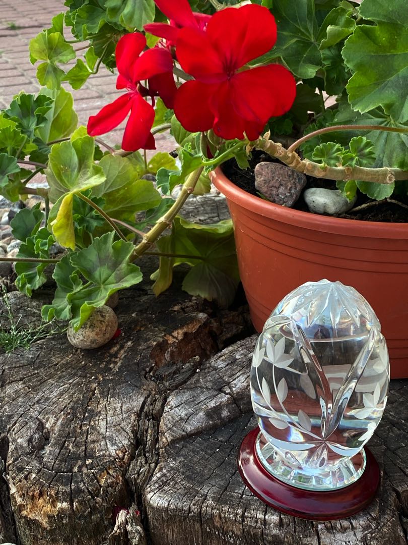 Kolekcjonerski, kryształowy przycisk do papieru z manufaktury szkła artystycznego Mayflower Glass England. Sygnowany. Wymiary; wys.12,5 x 8,5 cm.