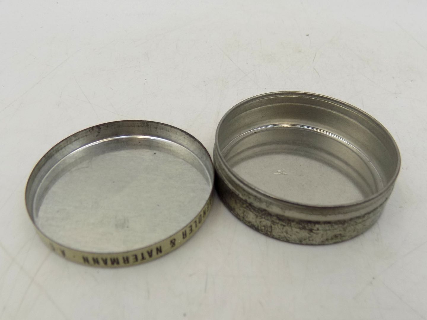 Mierząca 1,5 x 5 cm puszka wykonana jest z wytrzymałej blachy i zachowała swój oryginalny wygląd i kolory, dodając jej autentyczności i charakteru.