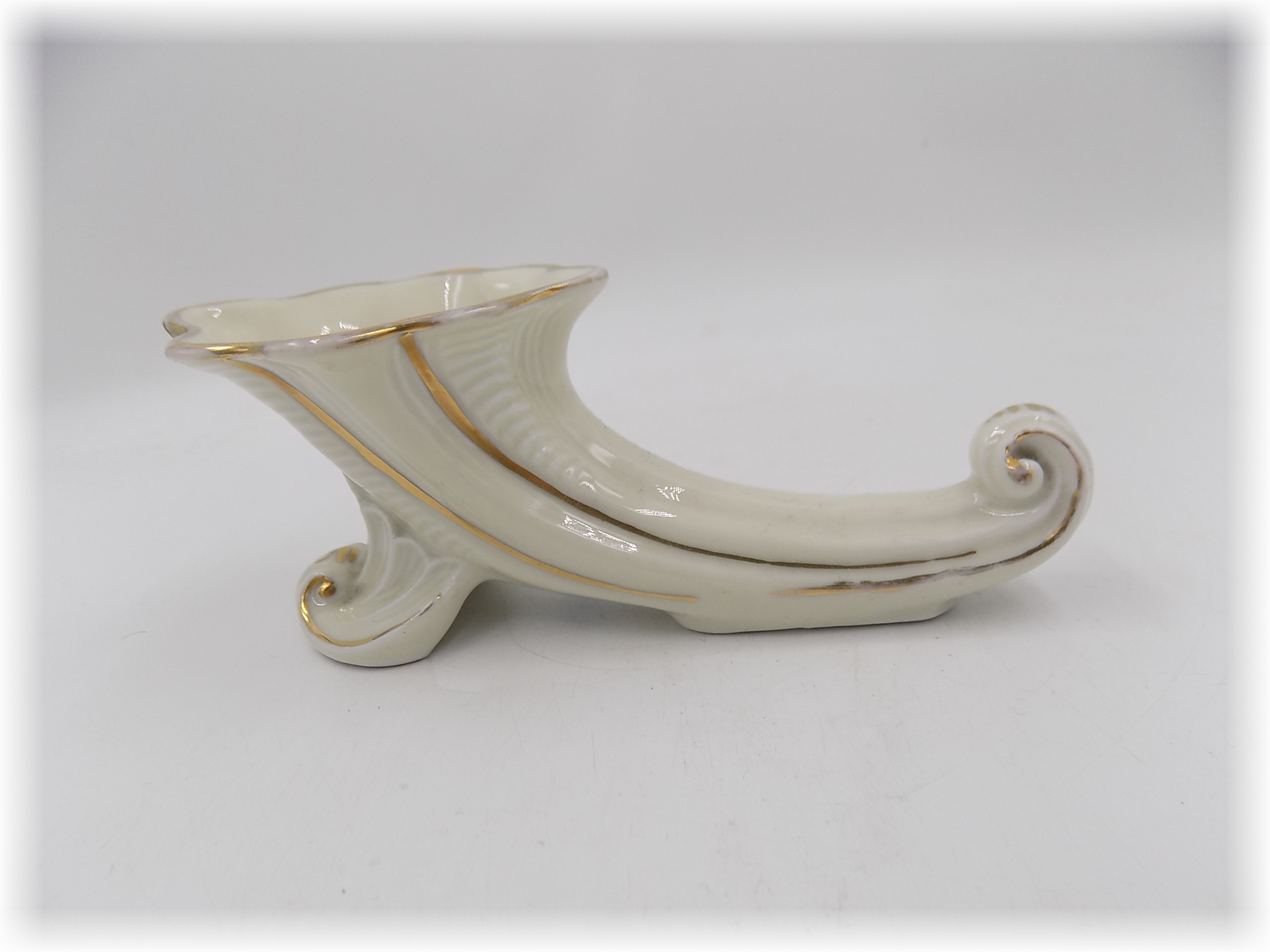 Róg obfitości z Fabryki Porcelany w Langewiesen. Sygnatura z lat 1950-72. Wymiary; wys.5 x 14 x 6 cm.