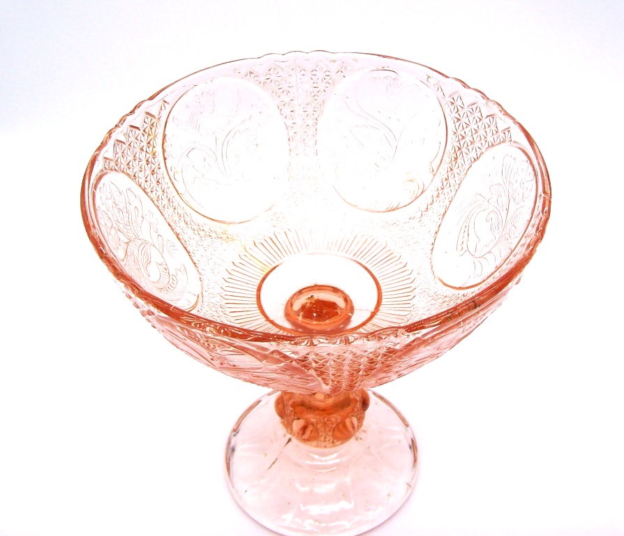 Szkło prasowane, tłoczona dekoracja. Szkło rozalinowe.
