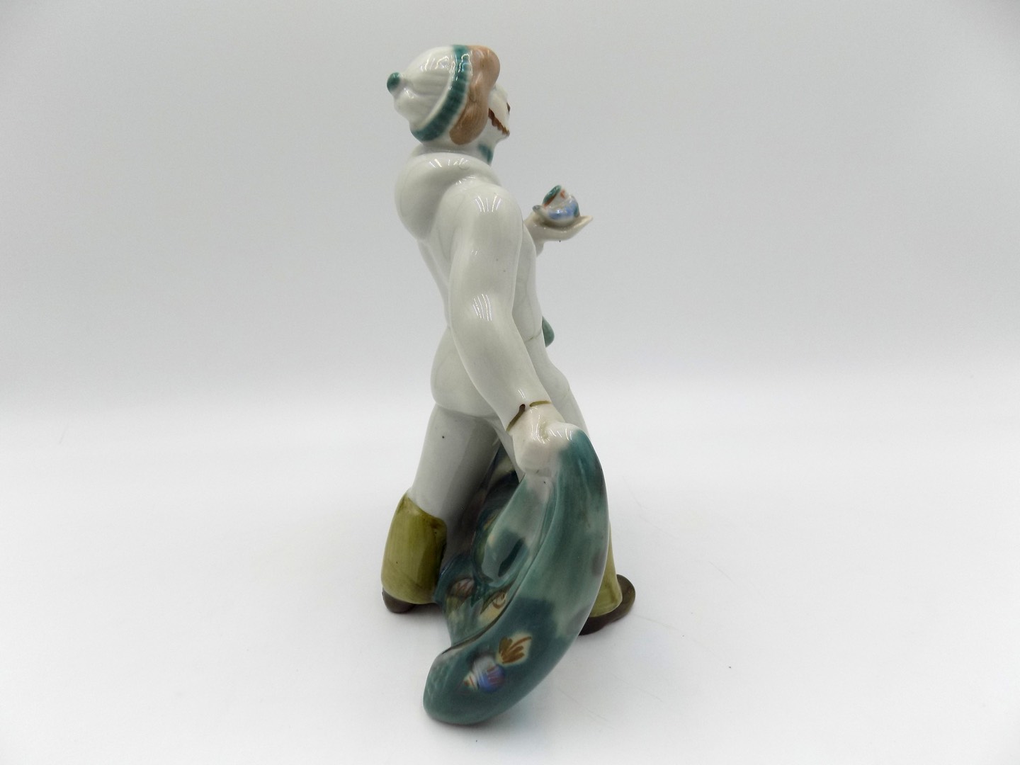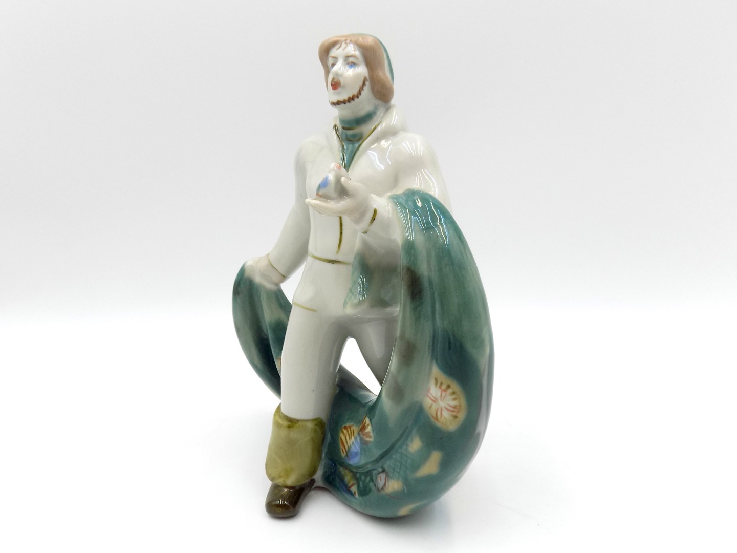 Porcelanowa figurka o nazwie "Rybak z siecią ryb" z renomowanej fabryki ceramiki ZHK Polonné z Ukrainy. Od 1973 roku firma ta zdobyła uznanie swoich klientów, tworząc unikalne i szlachetne dzieła ceramiczne, które zachwycają estetyką i szczegółowym wykonaniem. Ta figurka jest prawdziwym klejnotem wśród ich kolekcji.