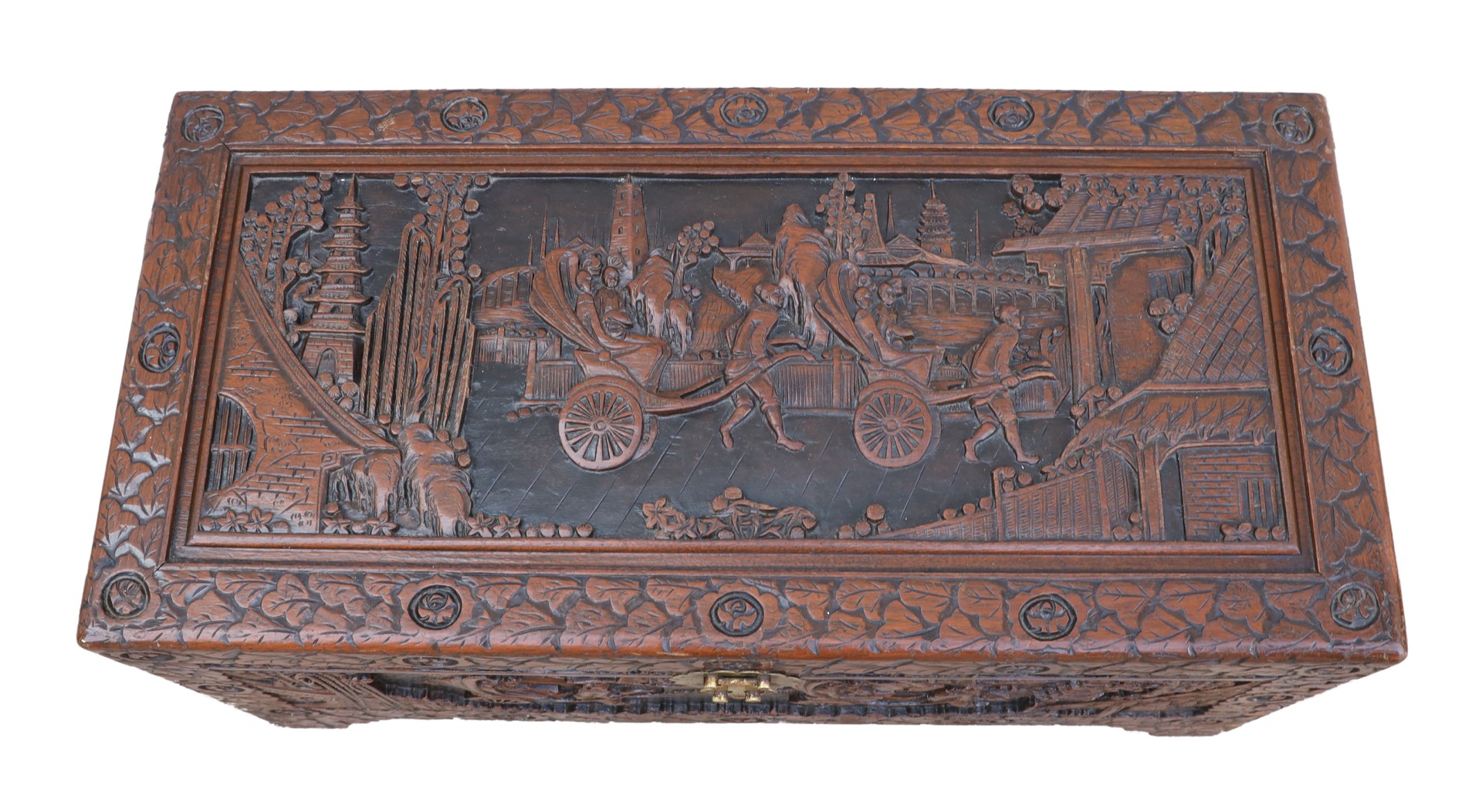 Unikalna Rzeźbiona Skrzynia z Połowy XX Wieku - Elegancja i Historia W Twoim Domu